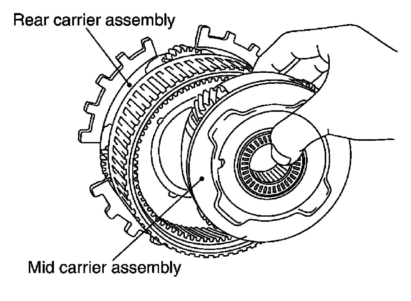 16) Remove mid carrier assembly and rear carrier assembly as a unit.