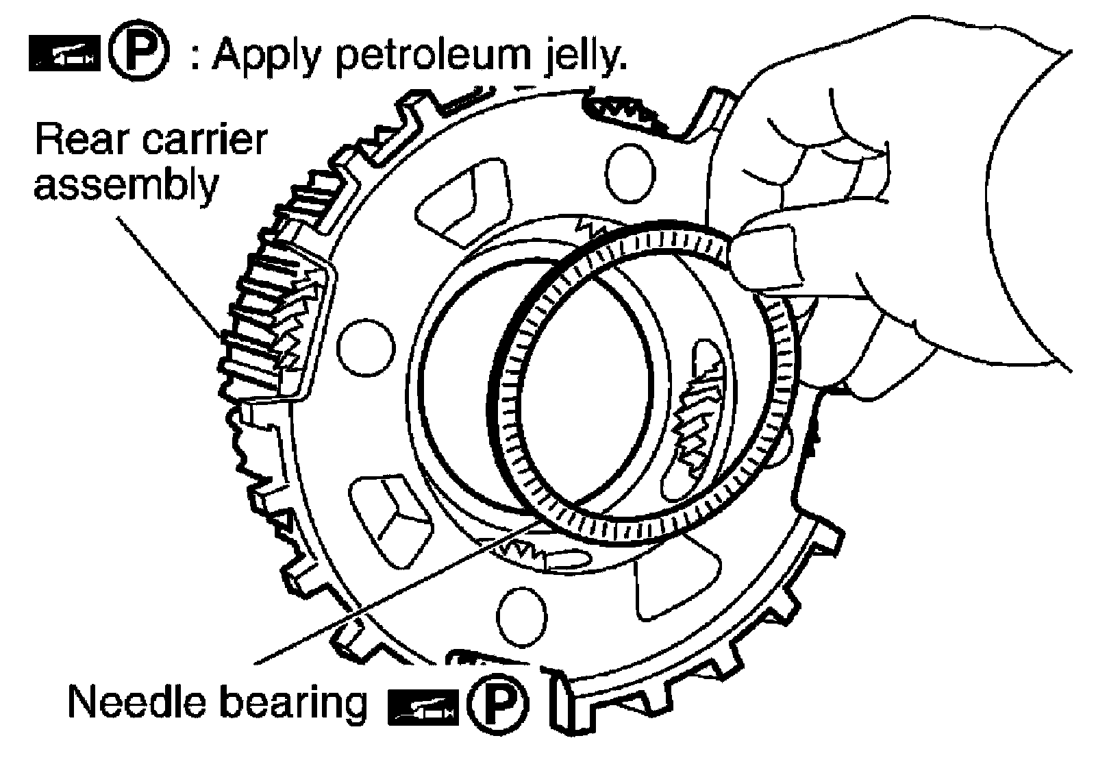 21) Remove needle bearing from rear carrier assembly.