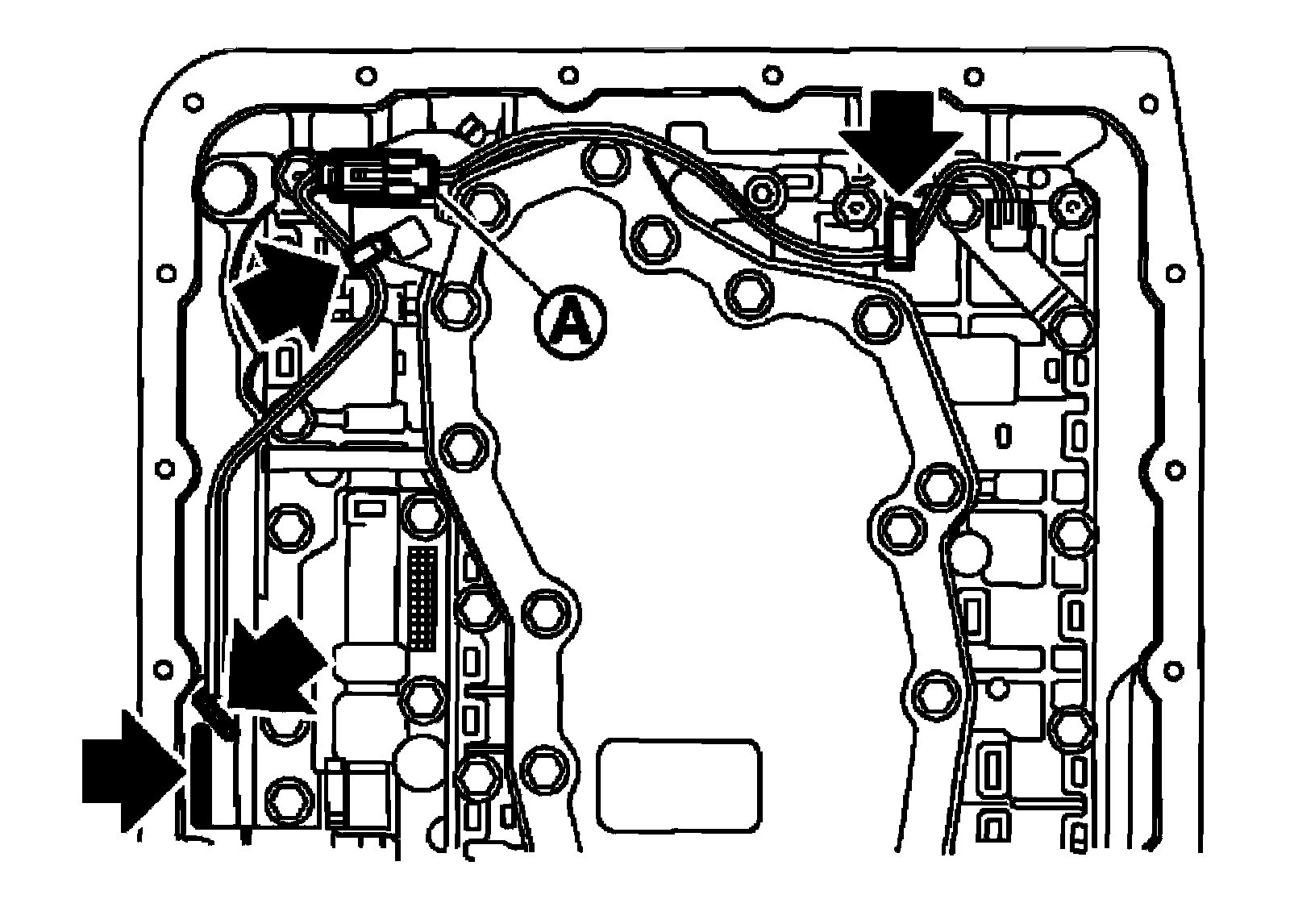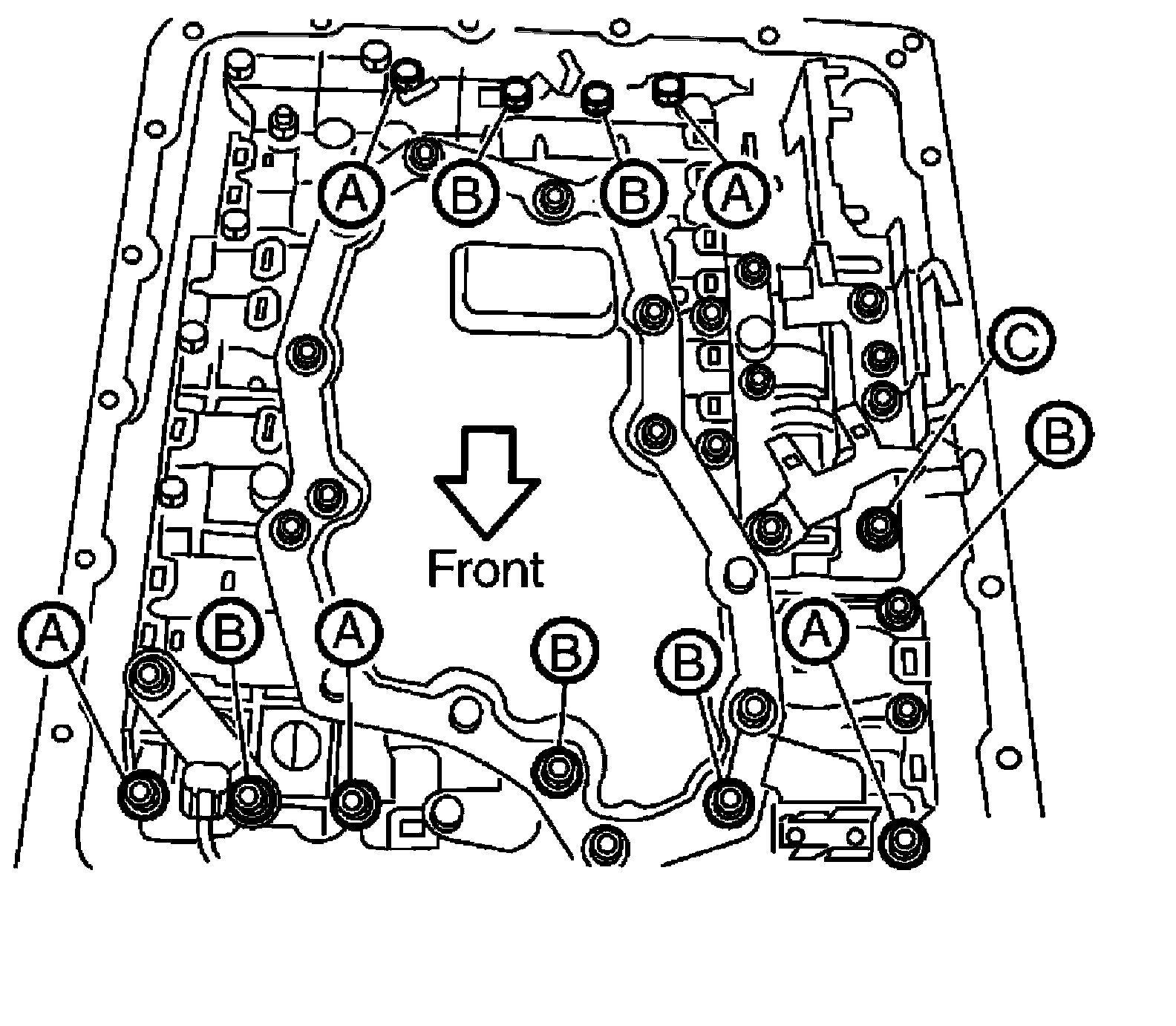 35) Remove bolts (A), (B) and (C) from control valve with TCM.