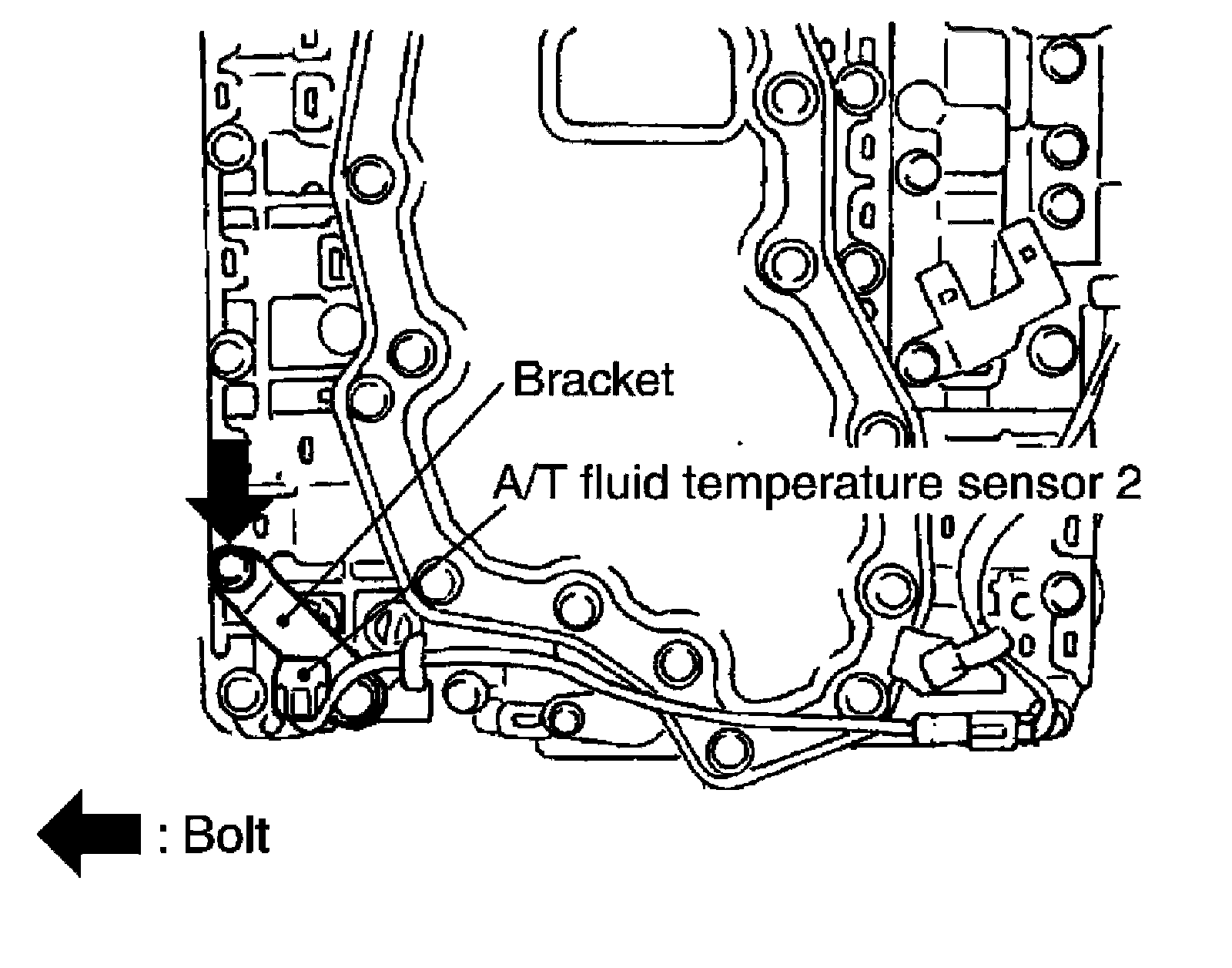 38) Remove bracket from A/T fluid temperature sensor 2.