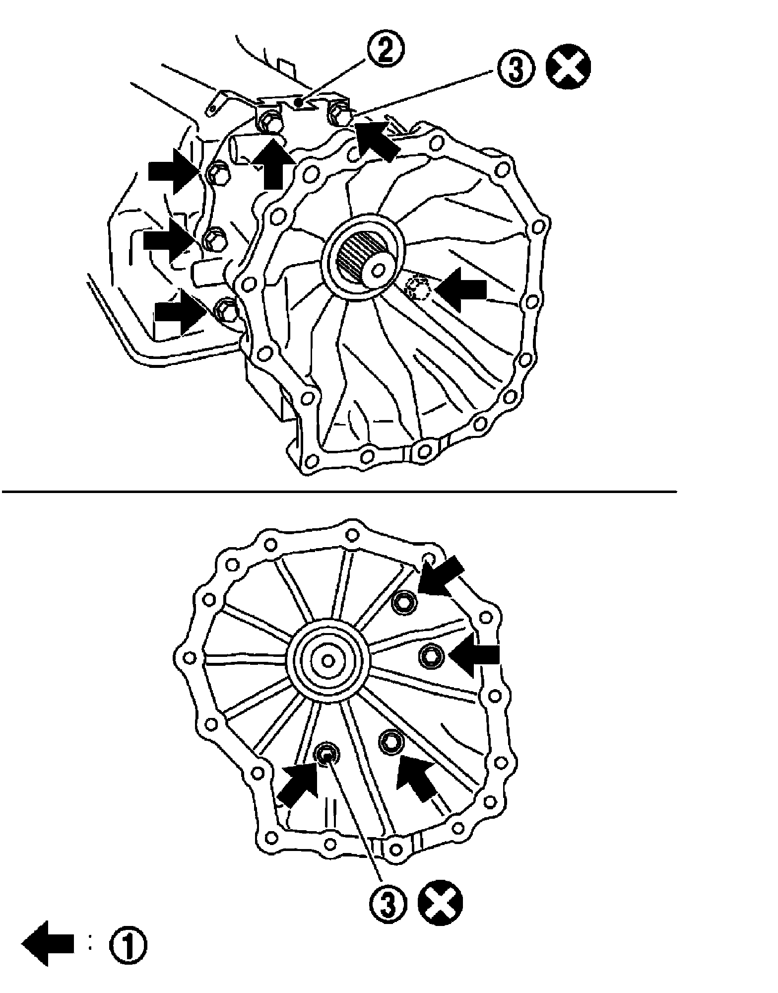 43) Remove rear extension assembly (2WD models) or adapter case assembly (4WD models) according to the following procedures.
