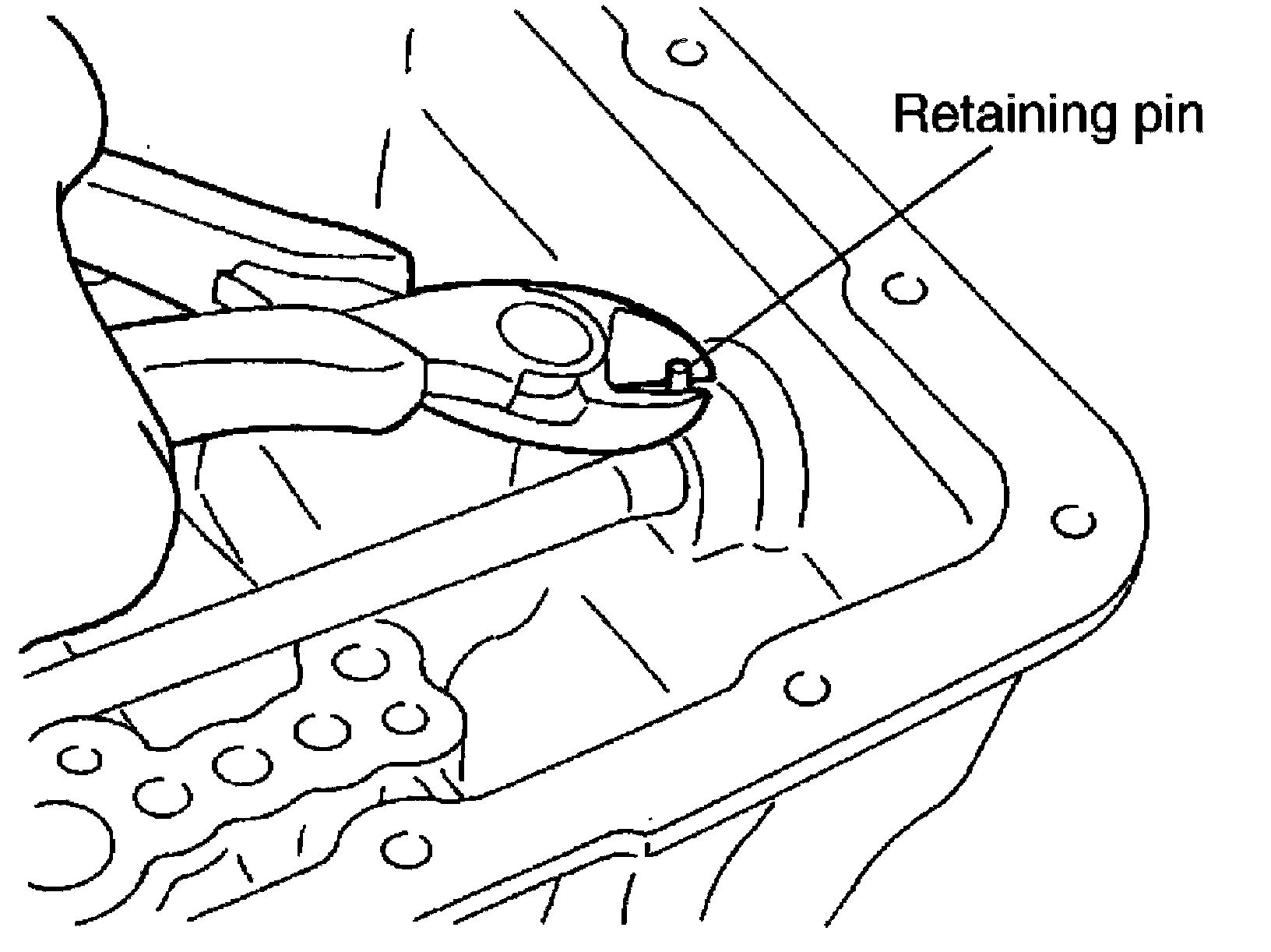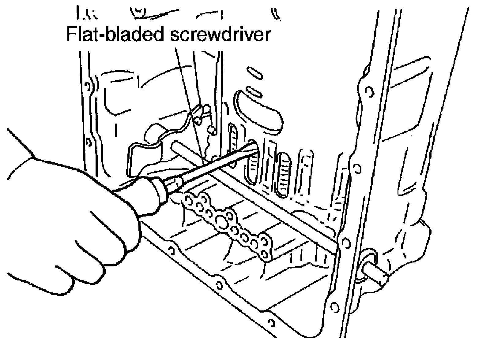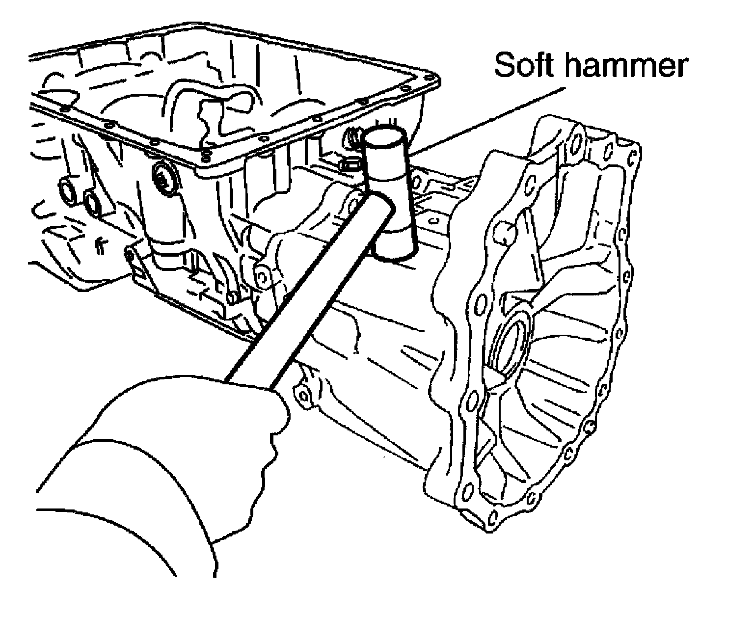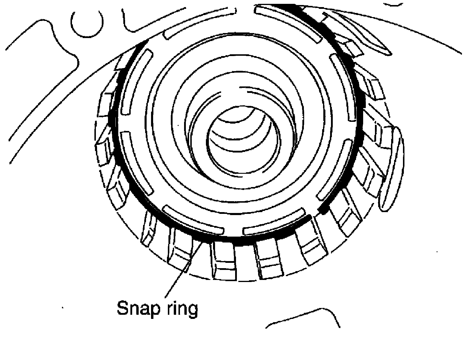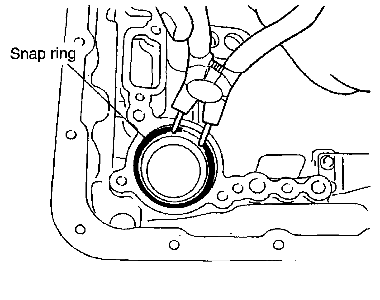 Press out snap ring from the transmission case oil pan side gap using a flat bladed screwdriver, and remove it using a another screwdriver.