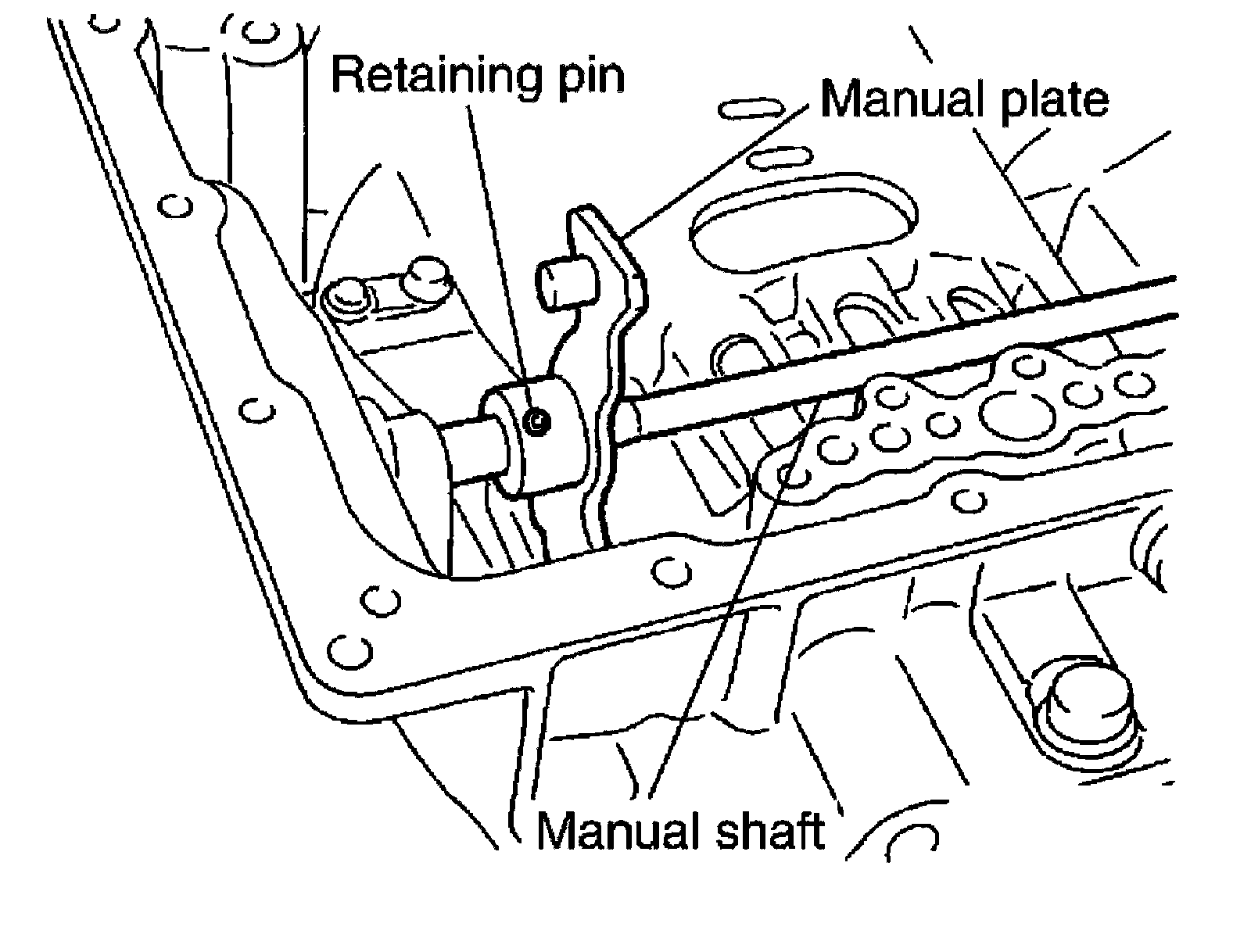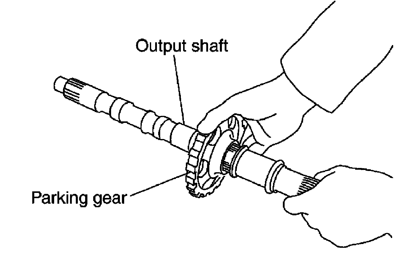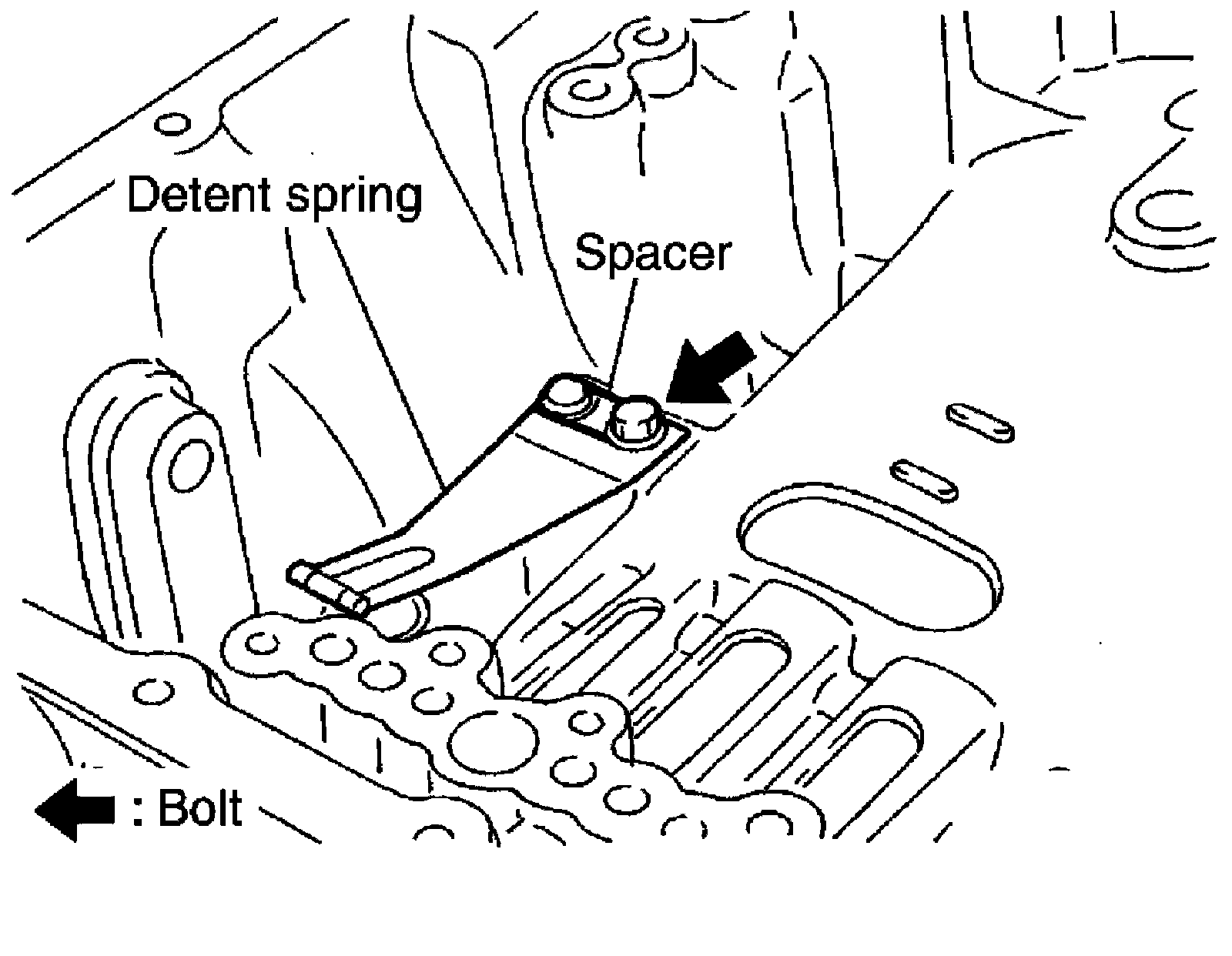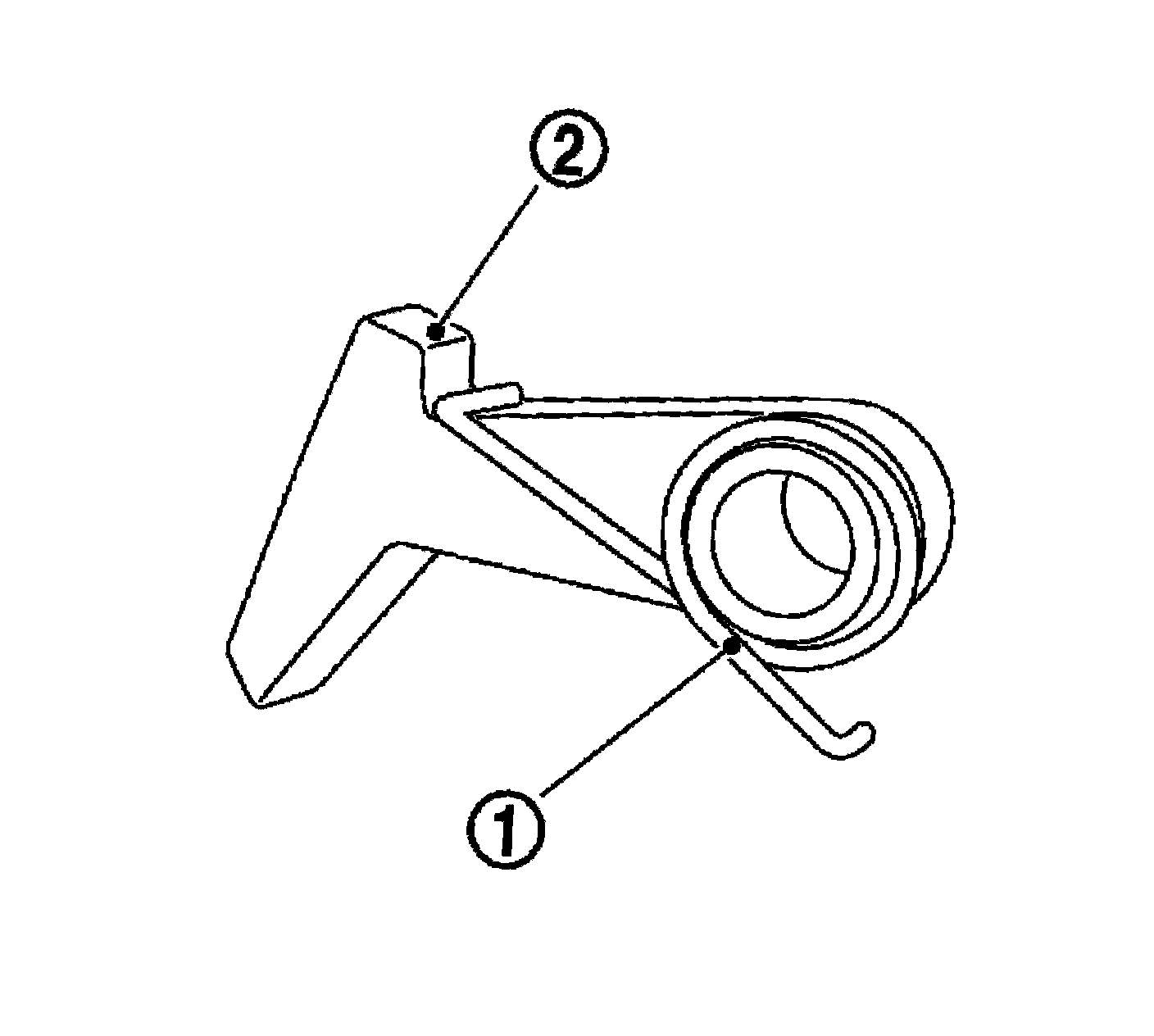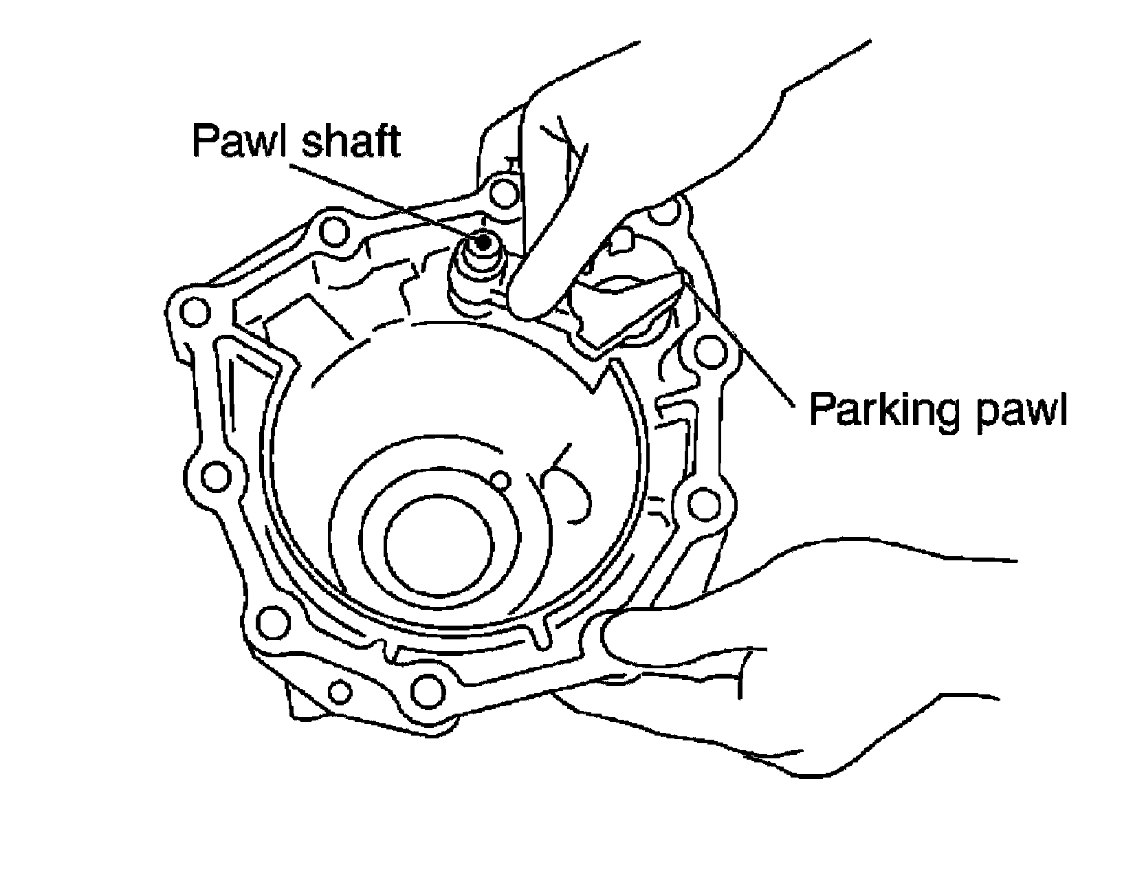 73) Remove parking pawl (with return spring) and pawl shaft from rear extension (2WD models) or adapter case (4WD models).