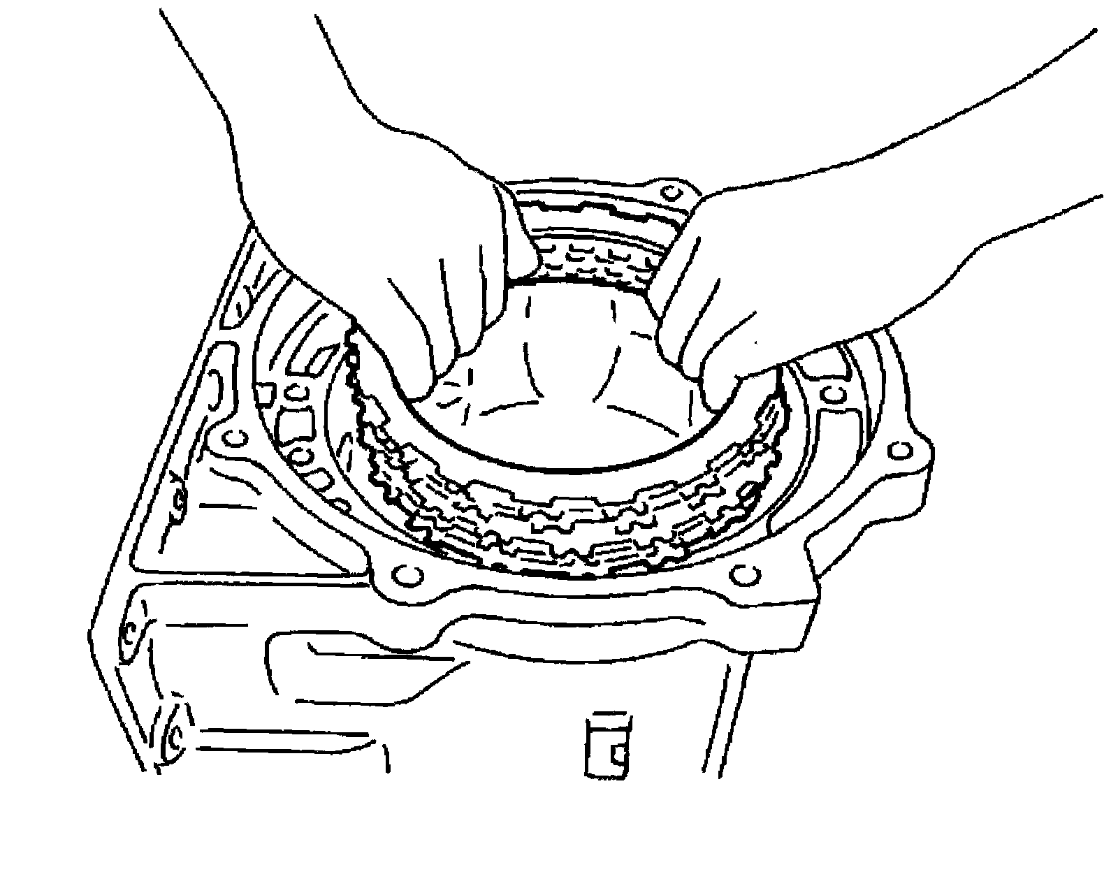 53) Remove reverse brake drive plates, driven plates and dish plate from transmission case.