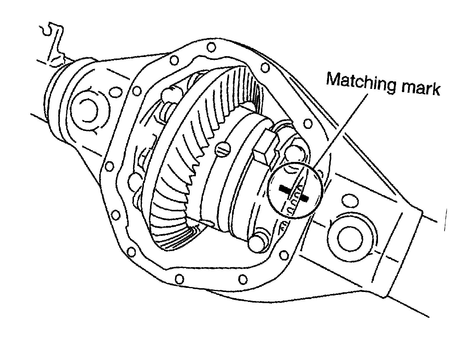 ^ Side bearing caps are line-board for initial assembly. The matching marks are used to install them in their original positions.