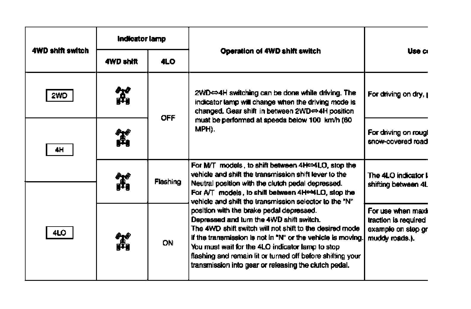 4WD shift switch is able to select from 2WD, 4H or 4LO