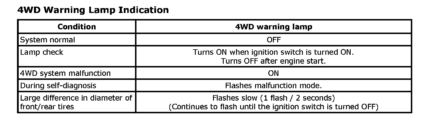 4WD Warning Lamp Indication