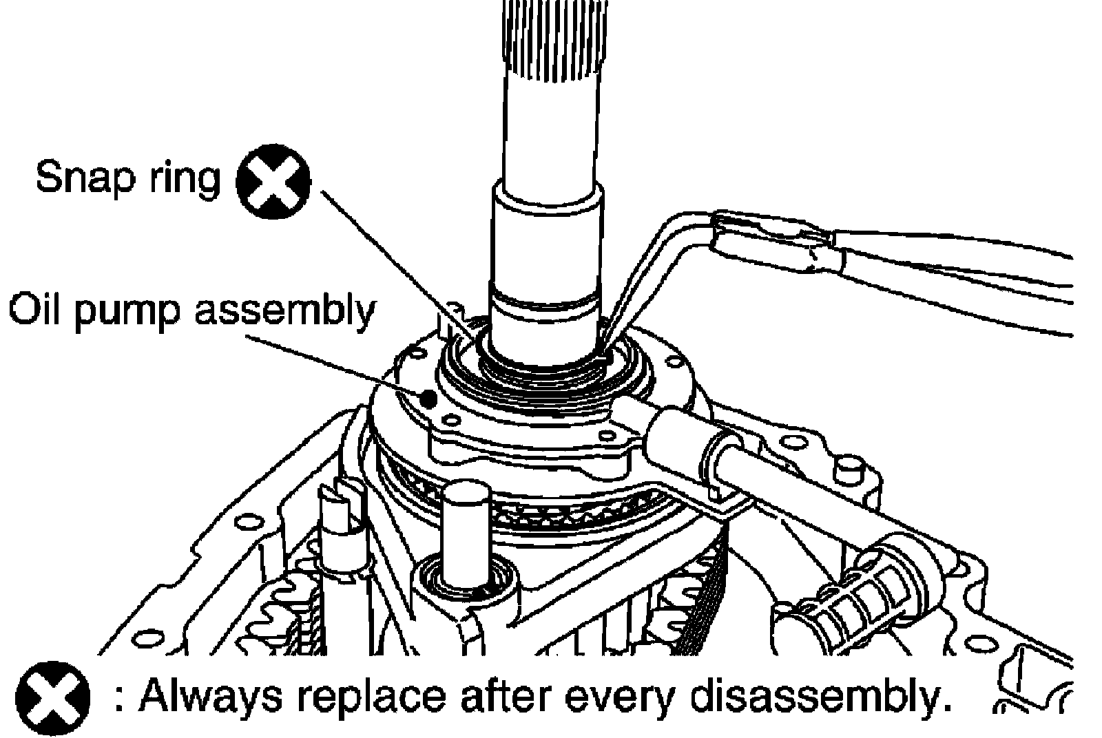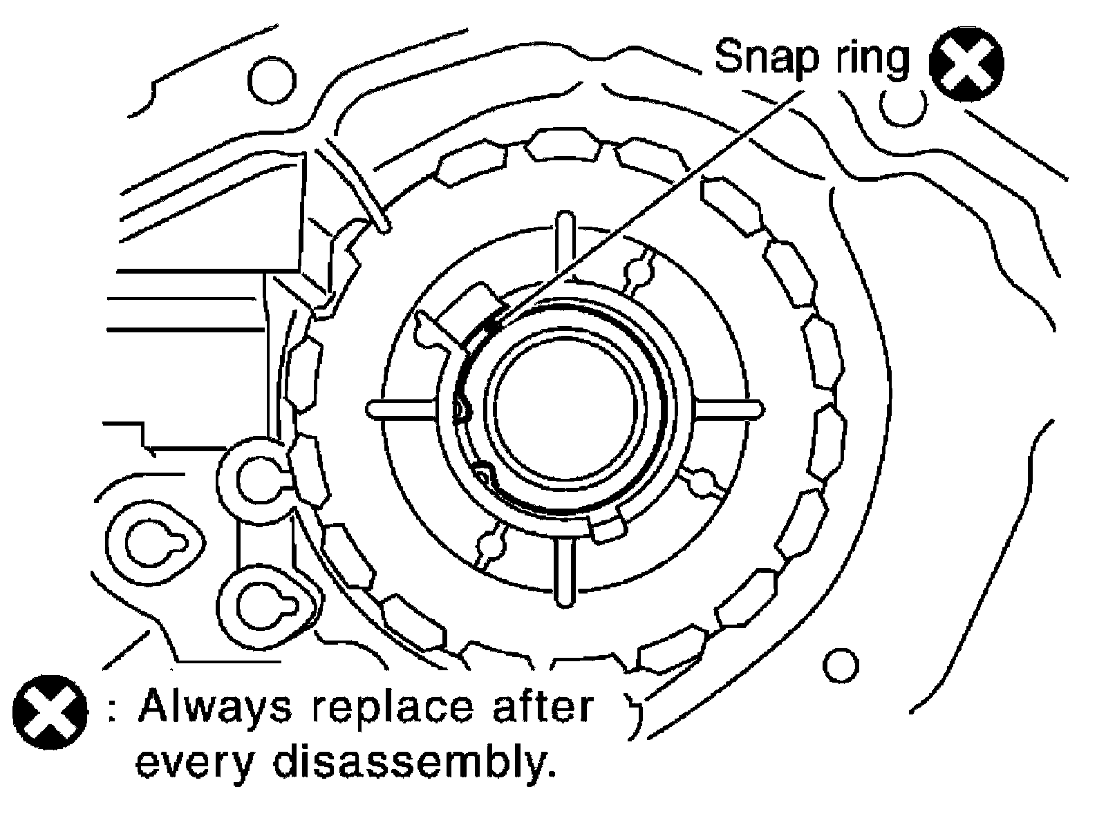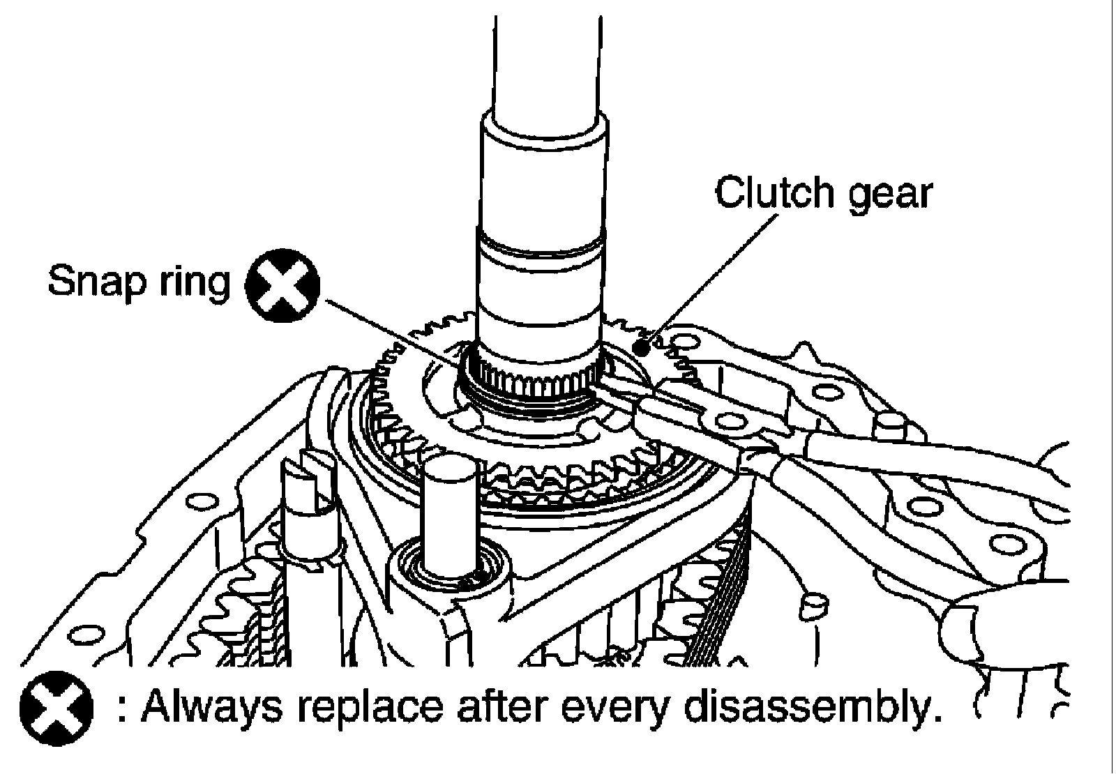 Do not reuse snap ring.