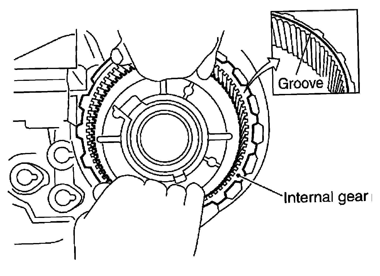 5) Install the internal gear with the groove facing up into the front case.