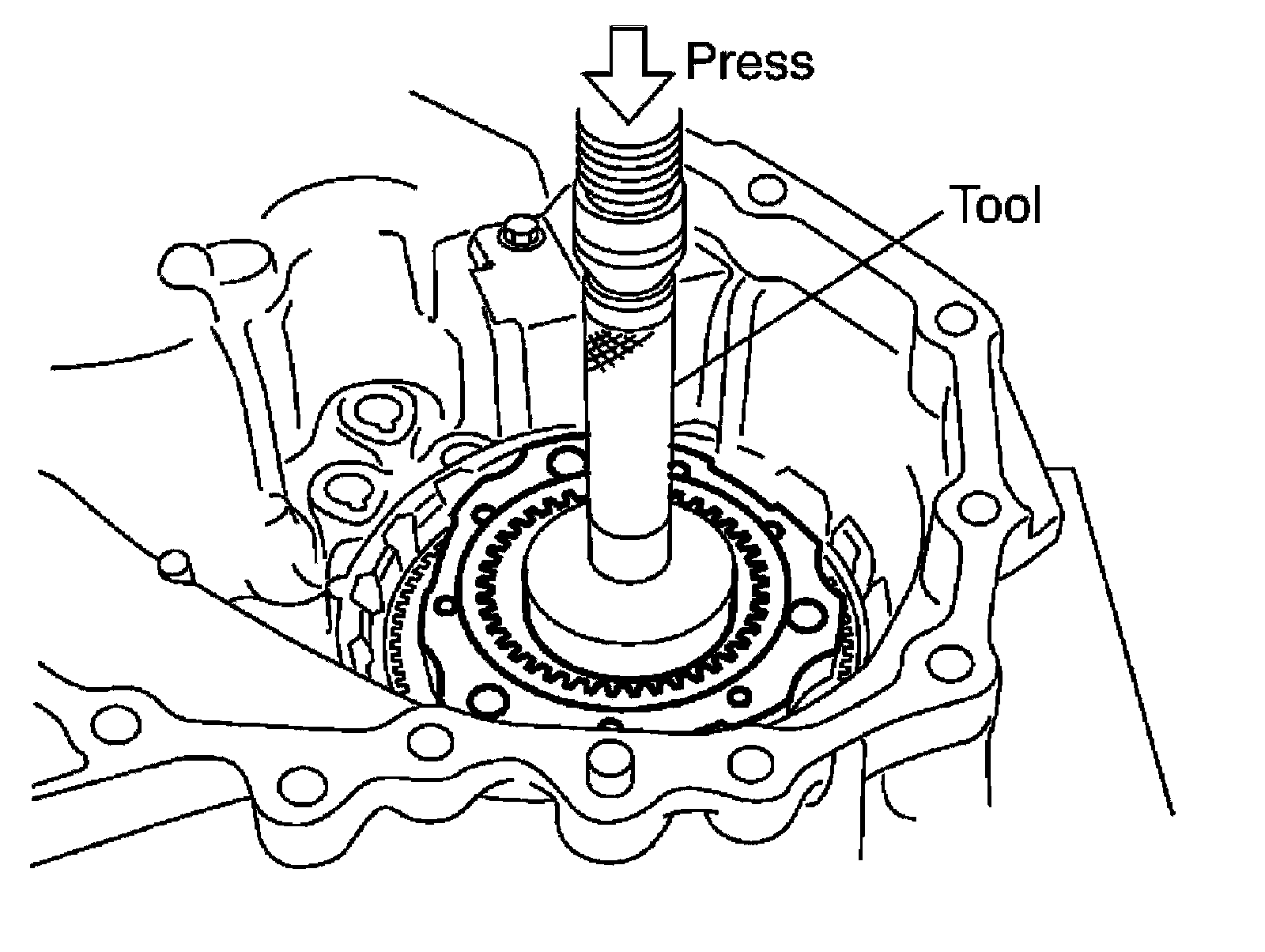 7) Install the planetary carrier assembly and sun gear assembly to the front case using Tool.