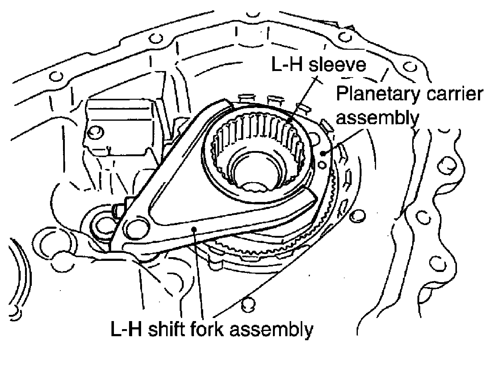 9) Set the L-H sleeve together with the L-H shift fork assembly onto the planetary carrier assembly.