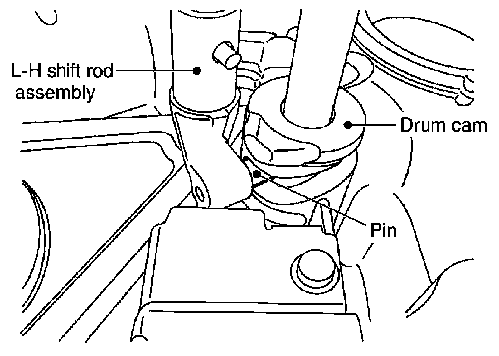 Set pin of L-H shift rod assembly into the groove of drum cam.