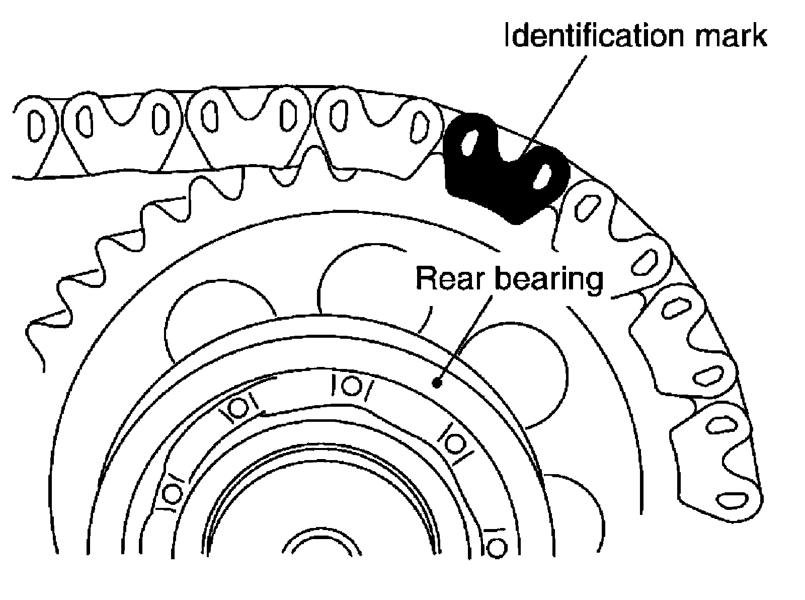 Install with the identification mark of drive chain on the side of the rear bearing of front drive shaft.