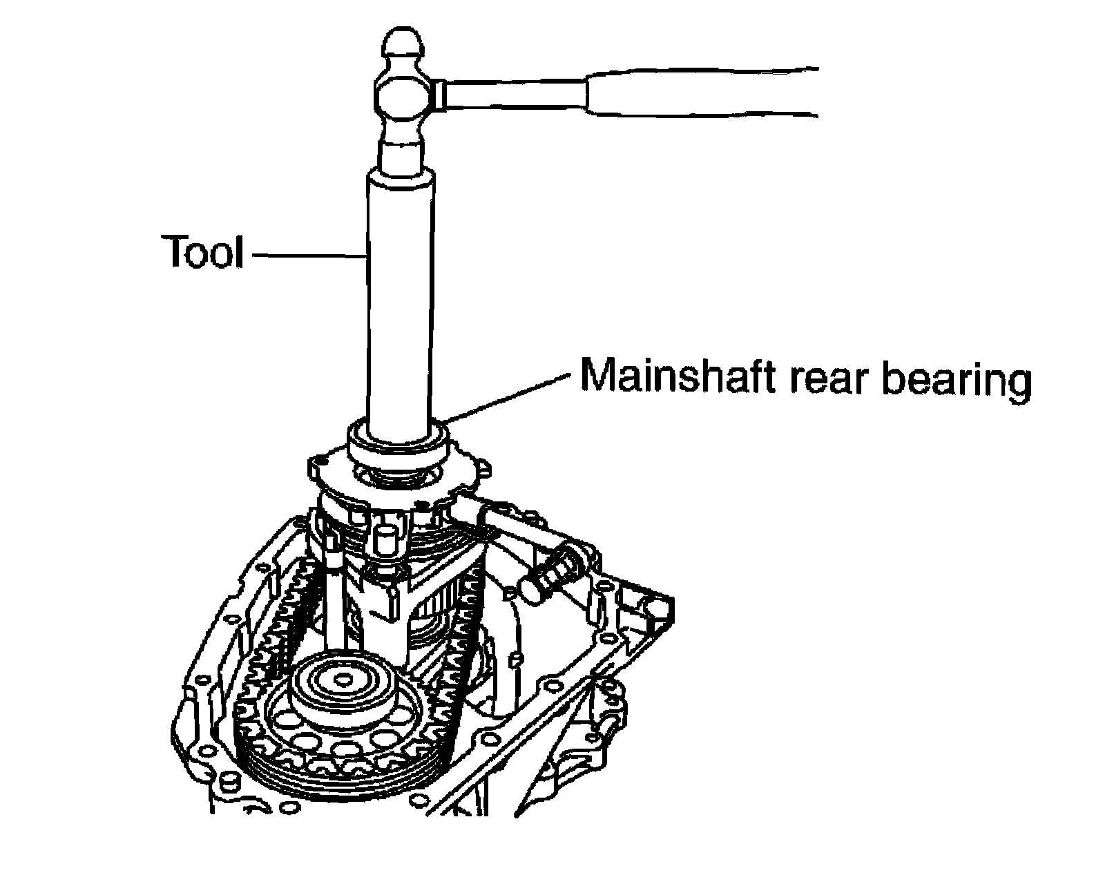 Do not push too hard in order to avoid snap rings becoming dislodged from mainshaft.