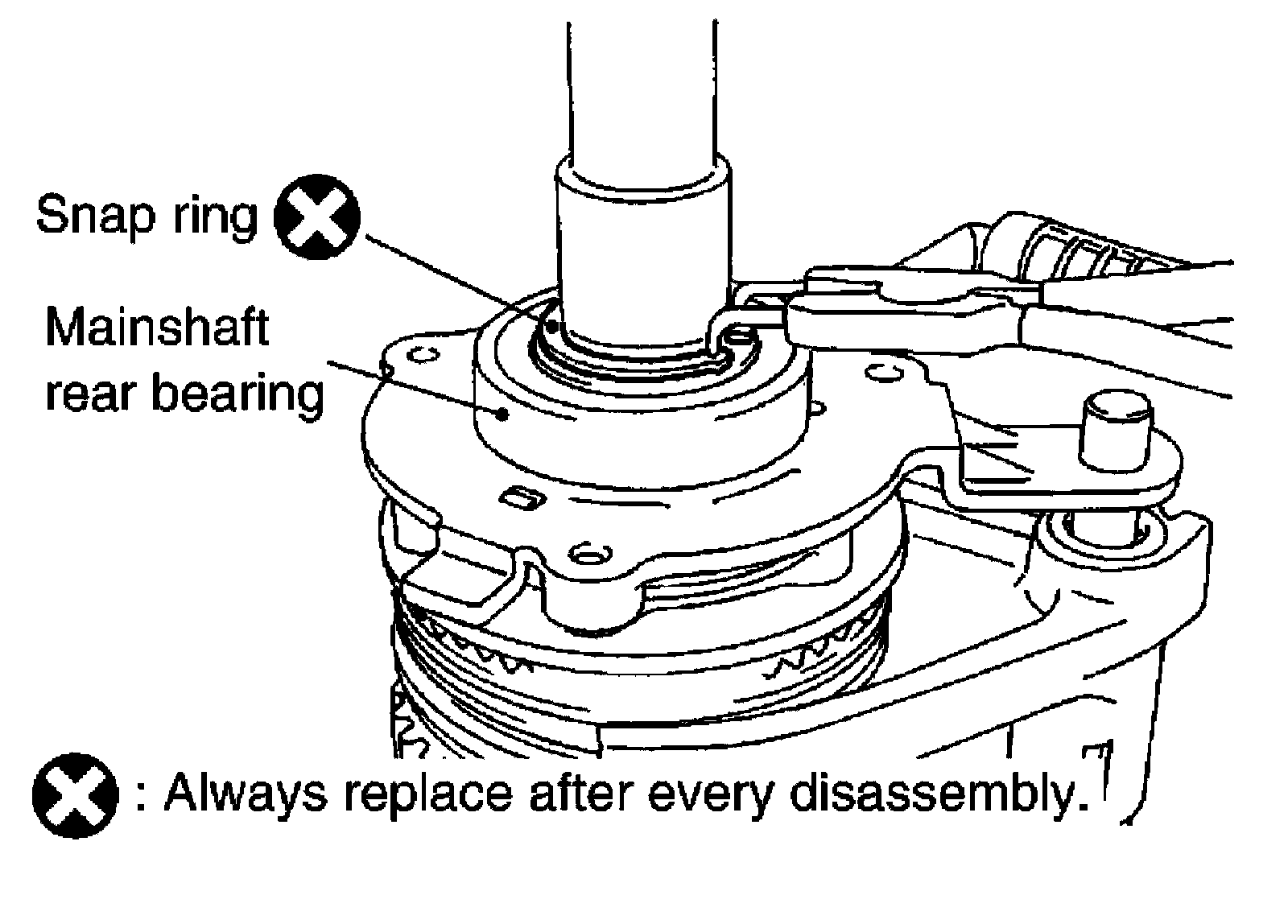 21) Install the new snap ring to the mainshaft using suitable tool.