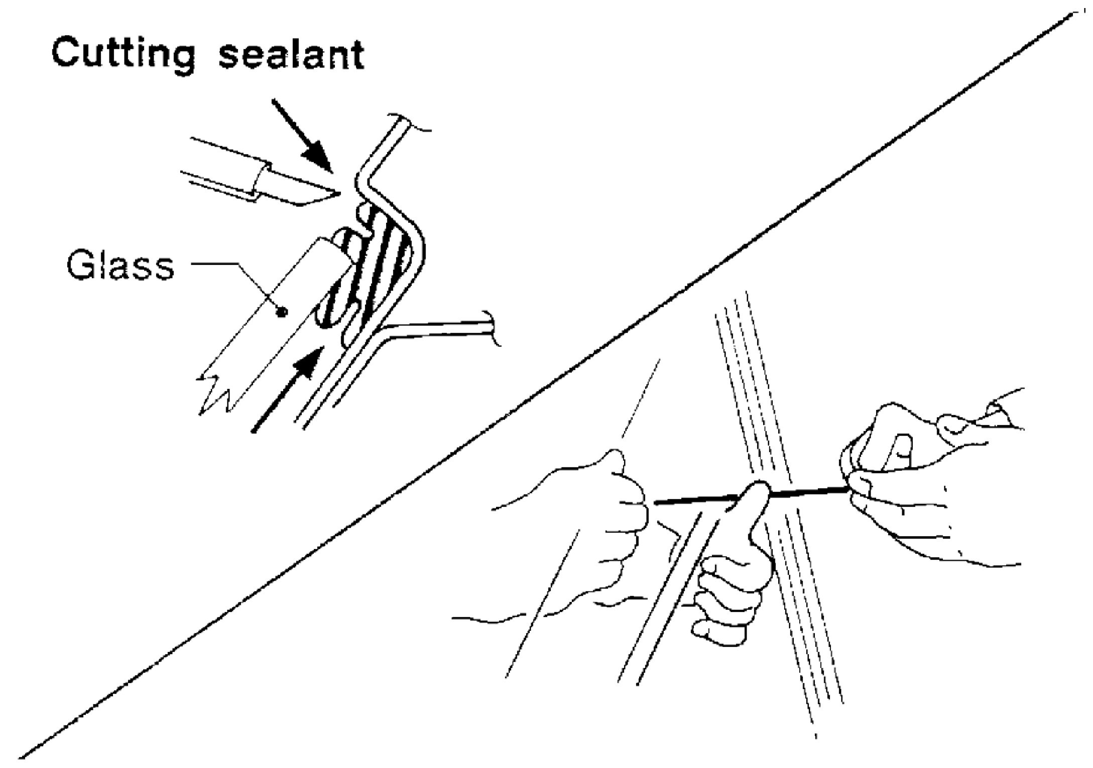 WARNING: When cutting the glass from the vehicle, always wear safety glasses and heavy gloves to help prevent glass splinters from entering your eyes or cutting your hands.