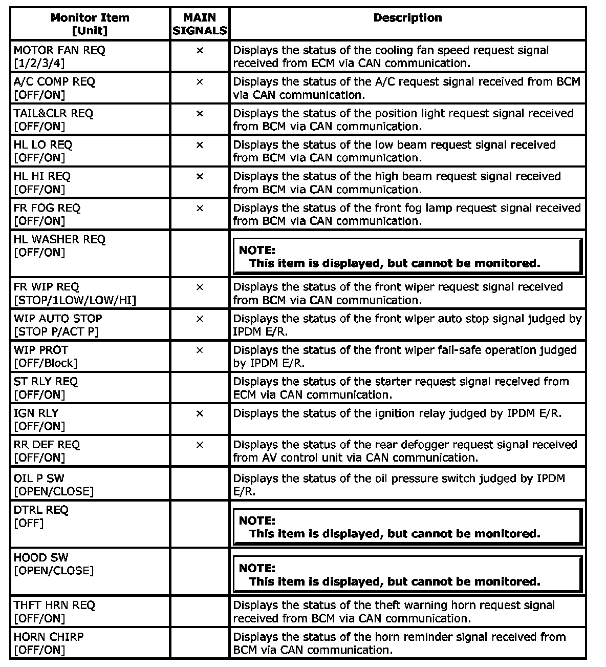 SDT performs the following functions via CAN communication with IPDM E/R.