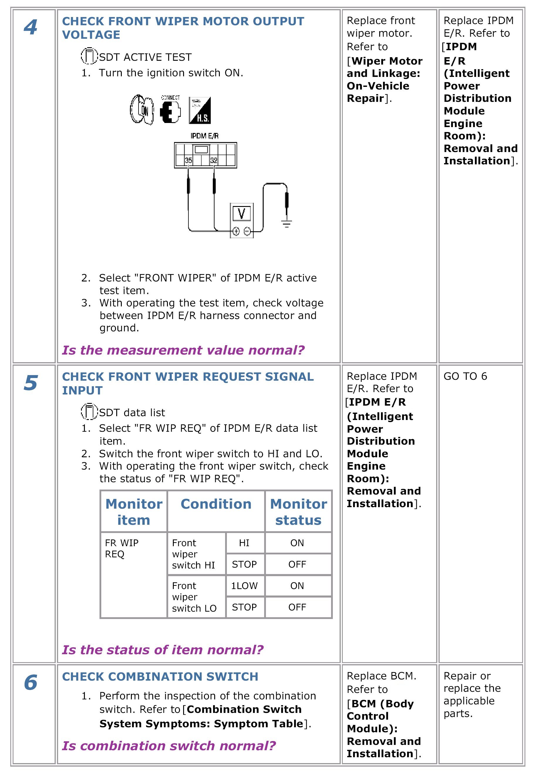 The front wiper does not operate under any operation conditions.