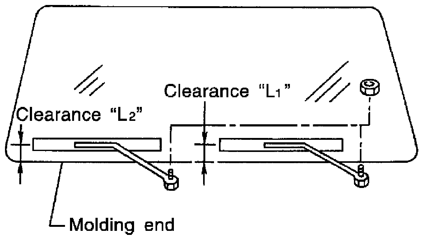 2. Lift the wiper blade up and then rest it onto glass surface, check the blade clearance "L1" and "L2".