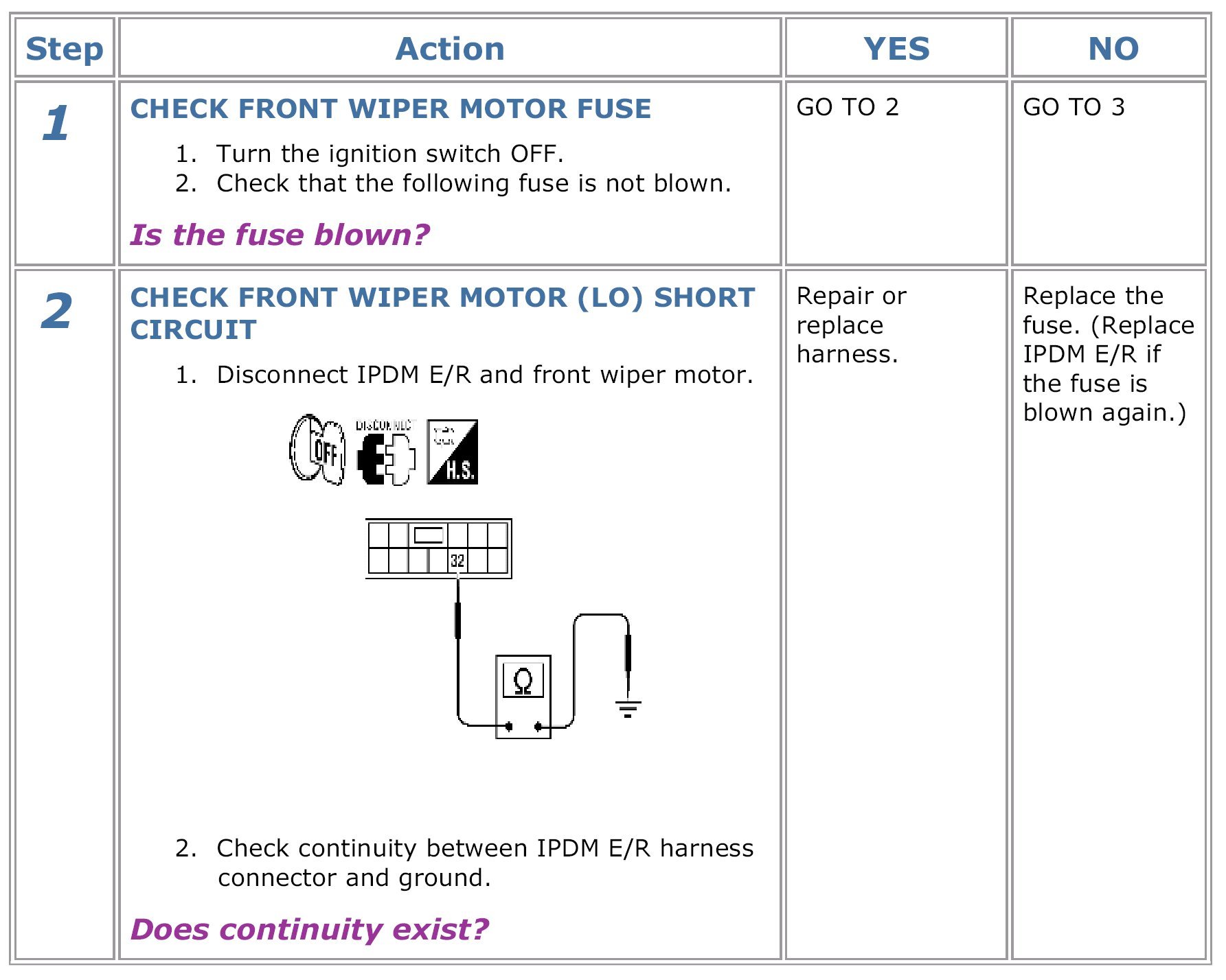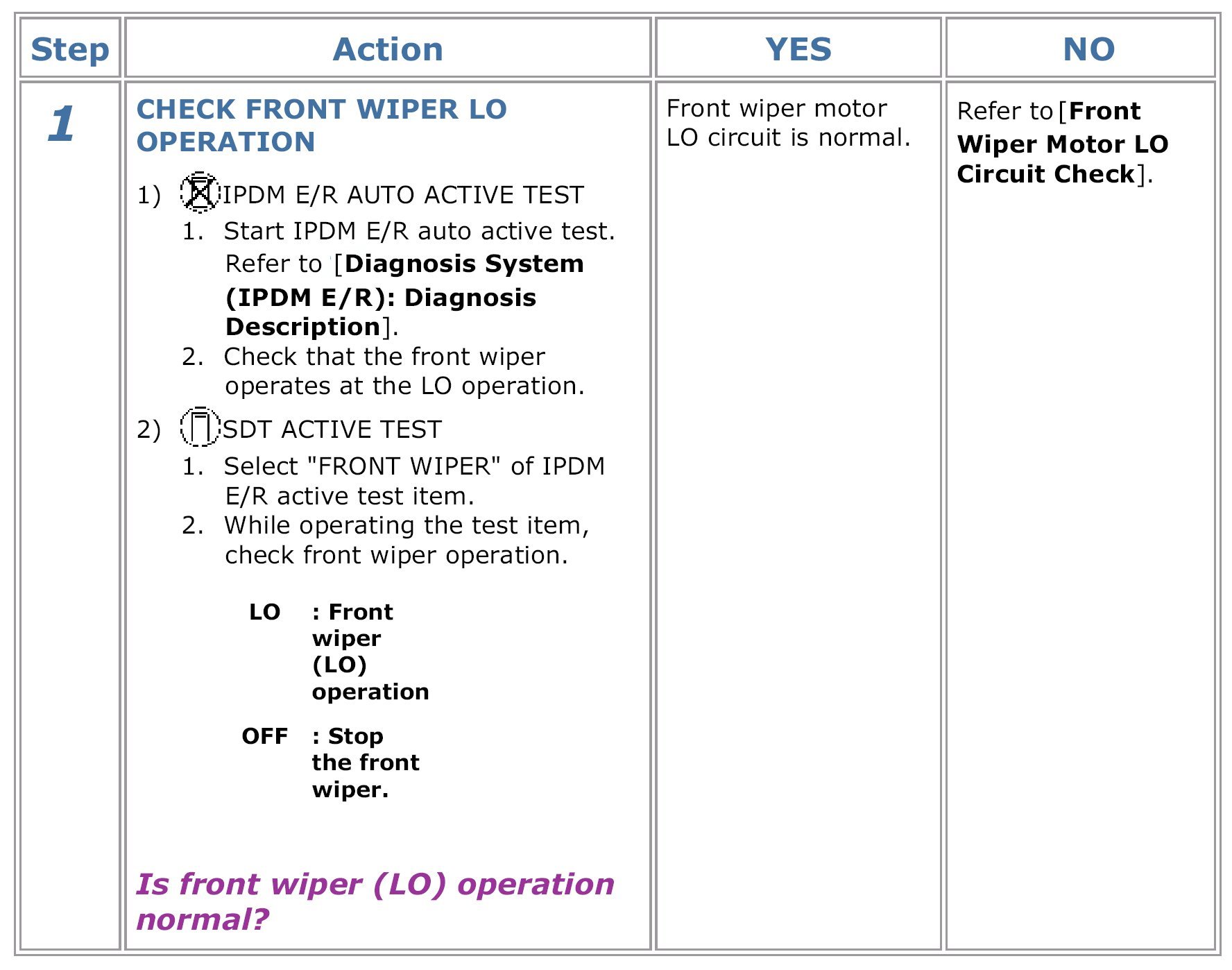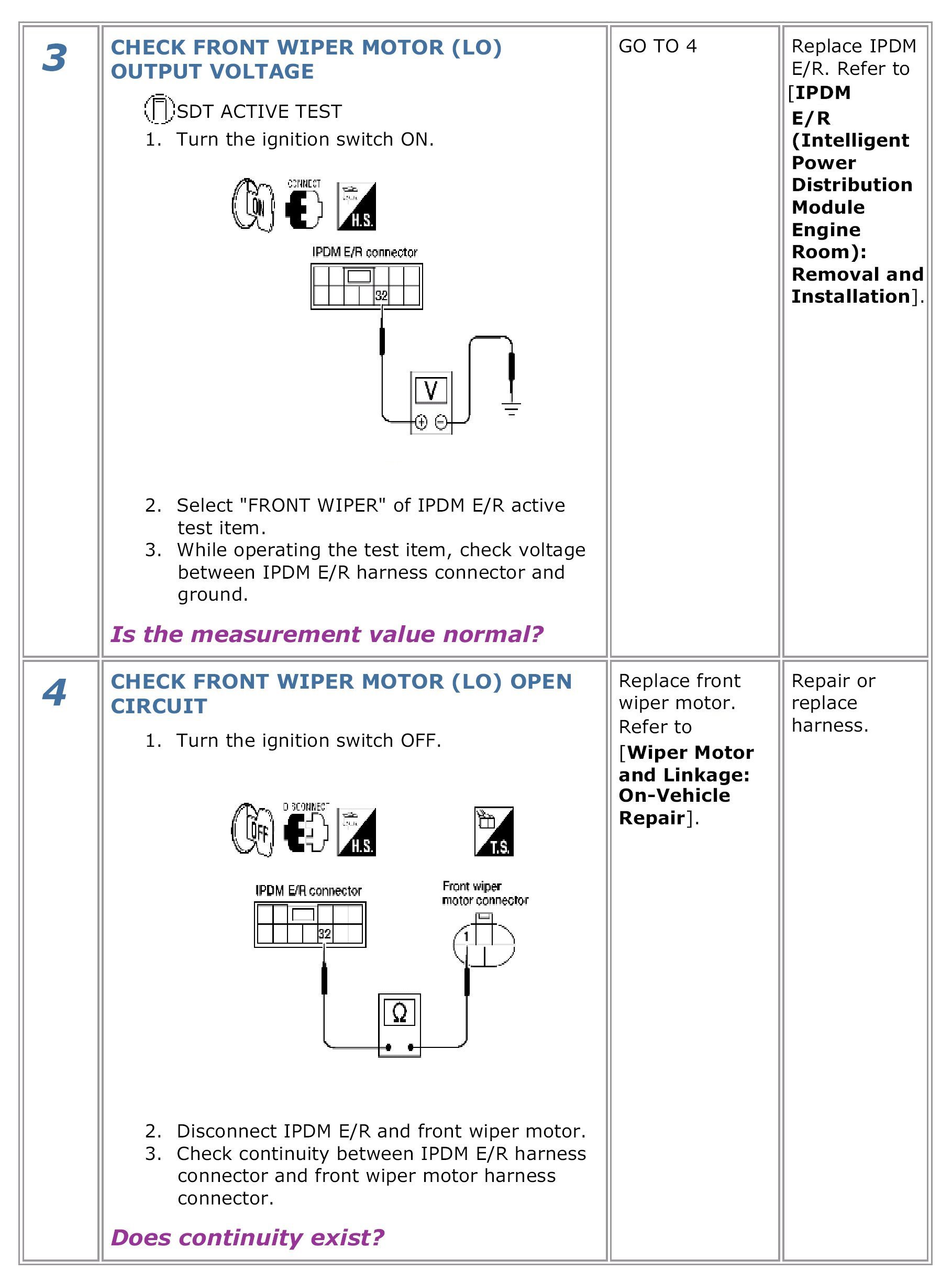Front Wiper Motor LO Circuit Check