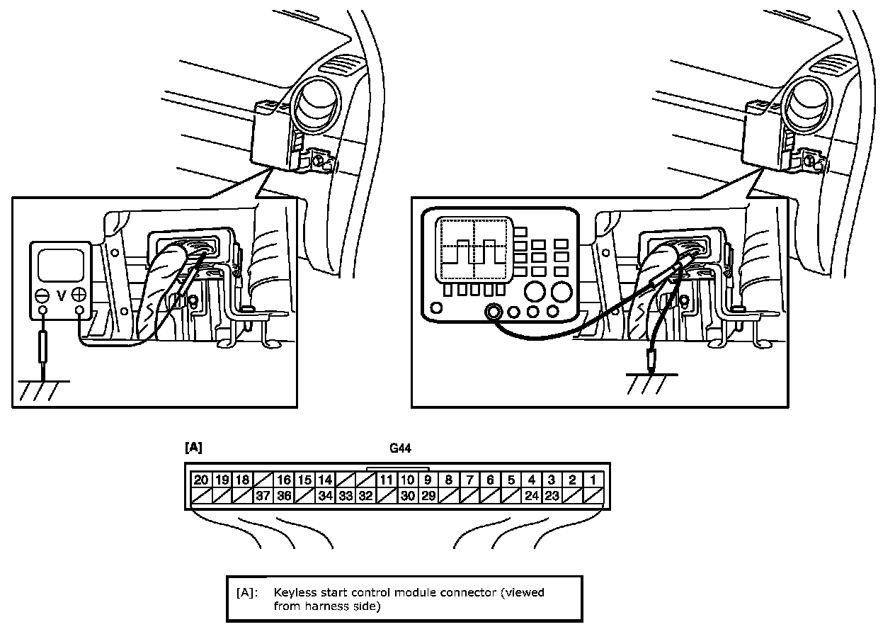 Keyless start control module and its circuits can be checked at keyless start control module wiring couplers by measuring voltage and resistance.
