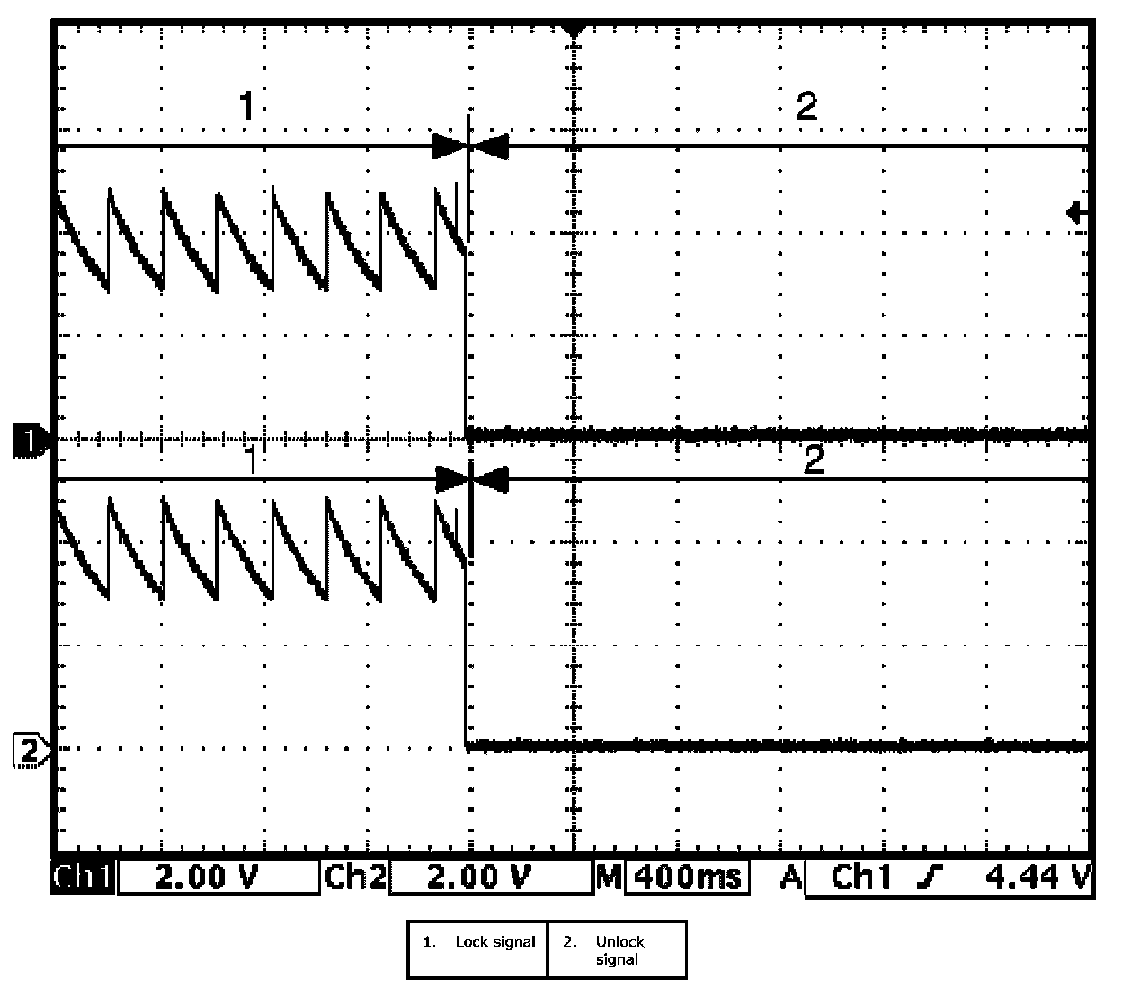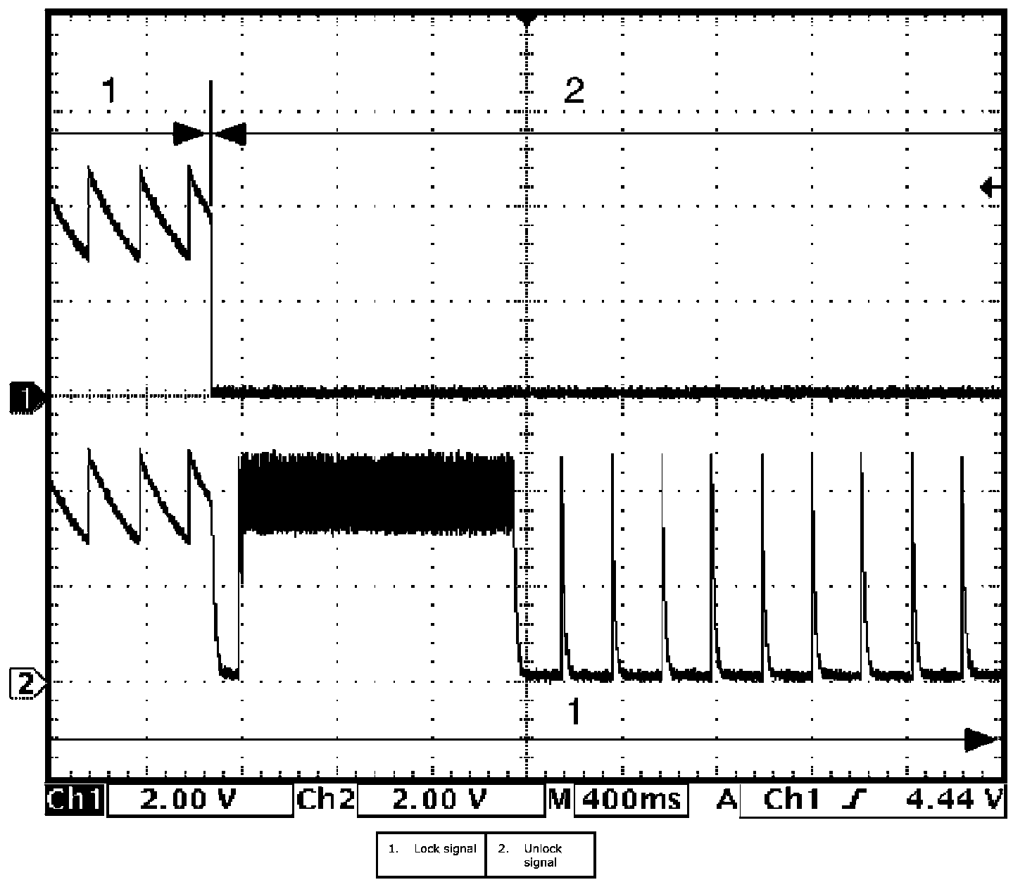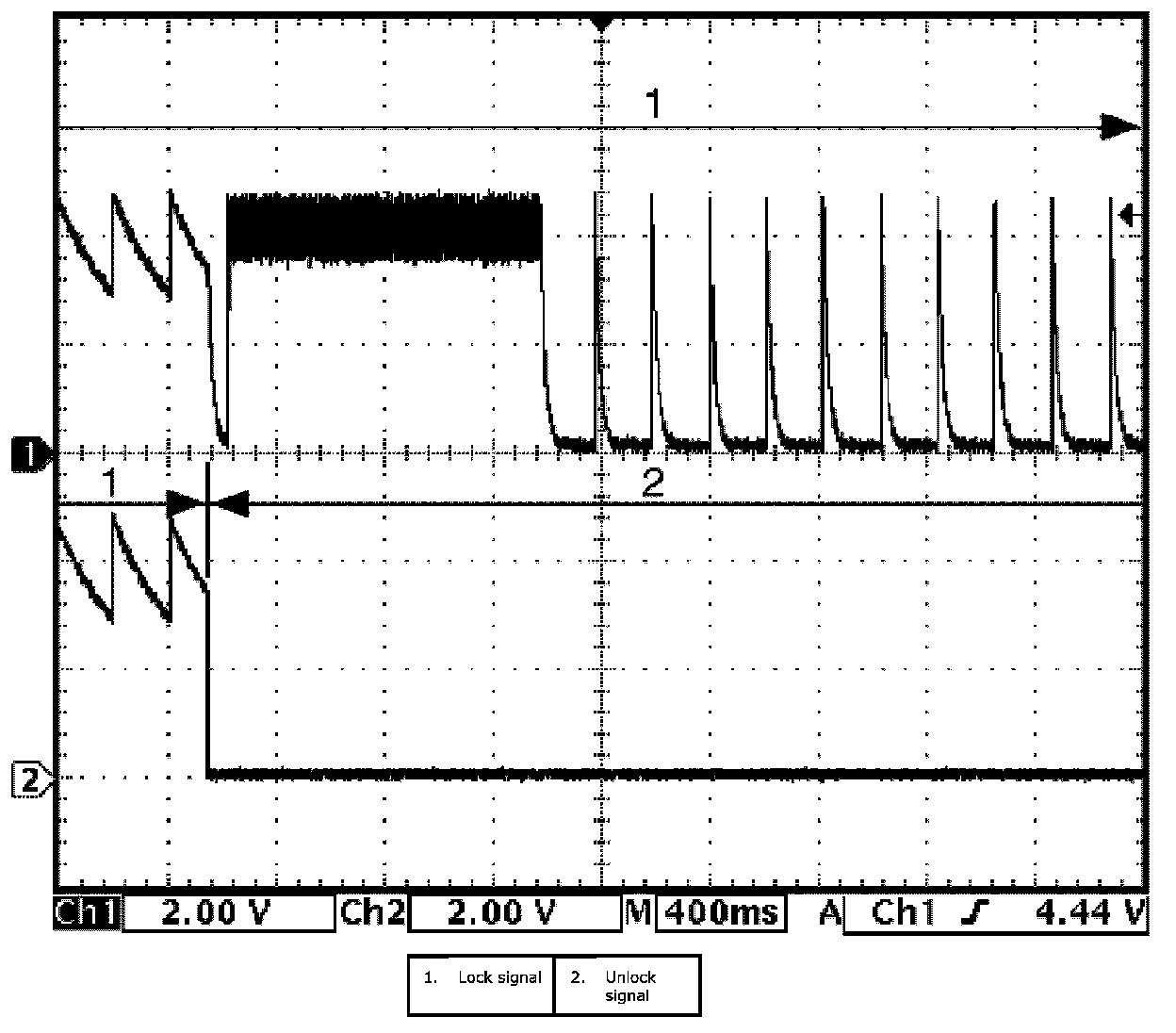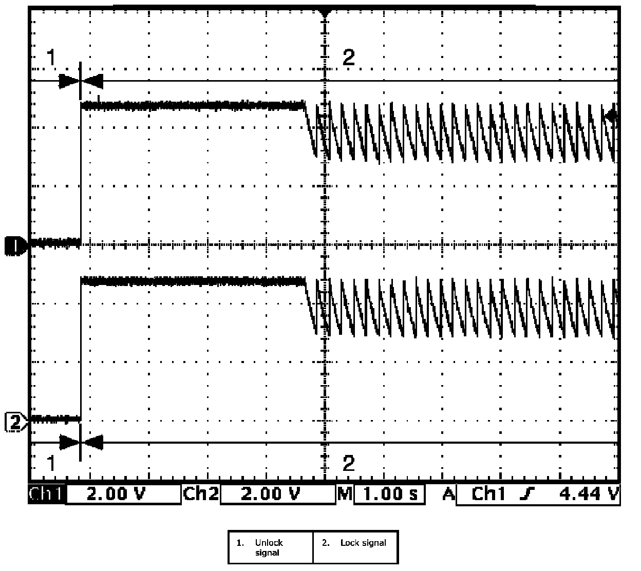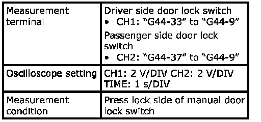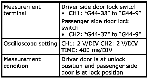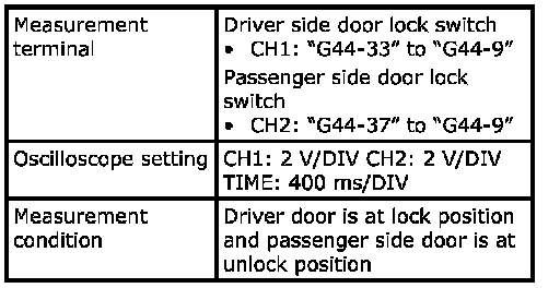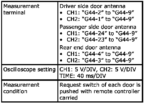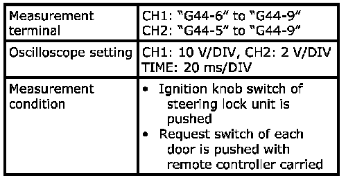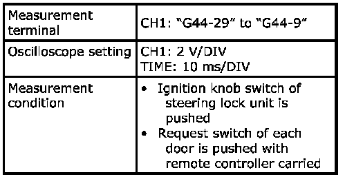 (Signal (1) communicated between keyless start control module and steering lock unit when measurement condition described below applies)
