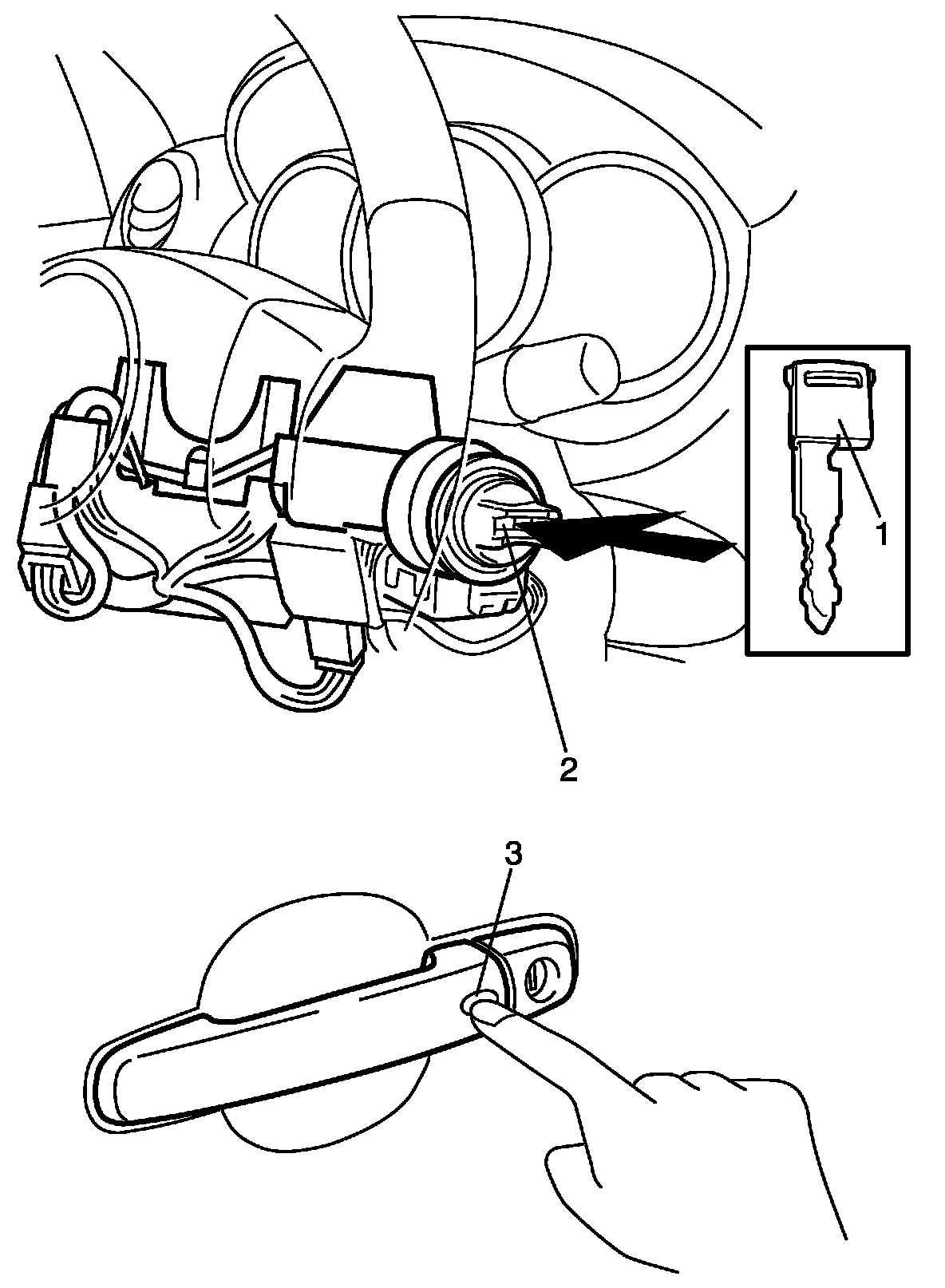 3. Check to make sure that ignition key is not inserted in ignition key cylinder. If it is, remove it.