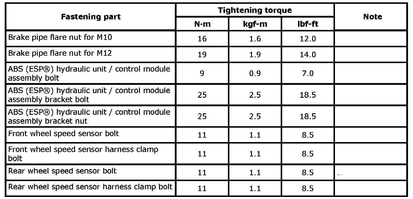 Tightening Torque SpecificationsCAUTION: