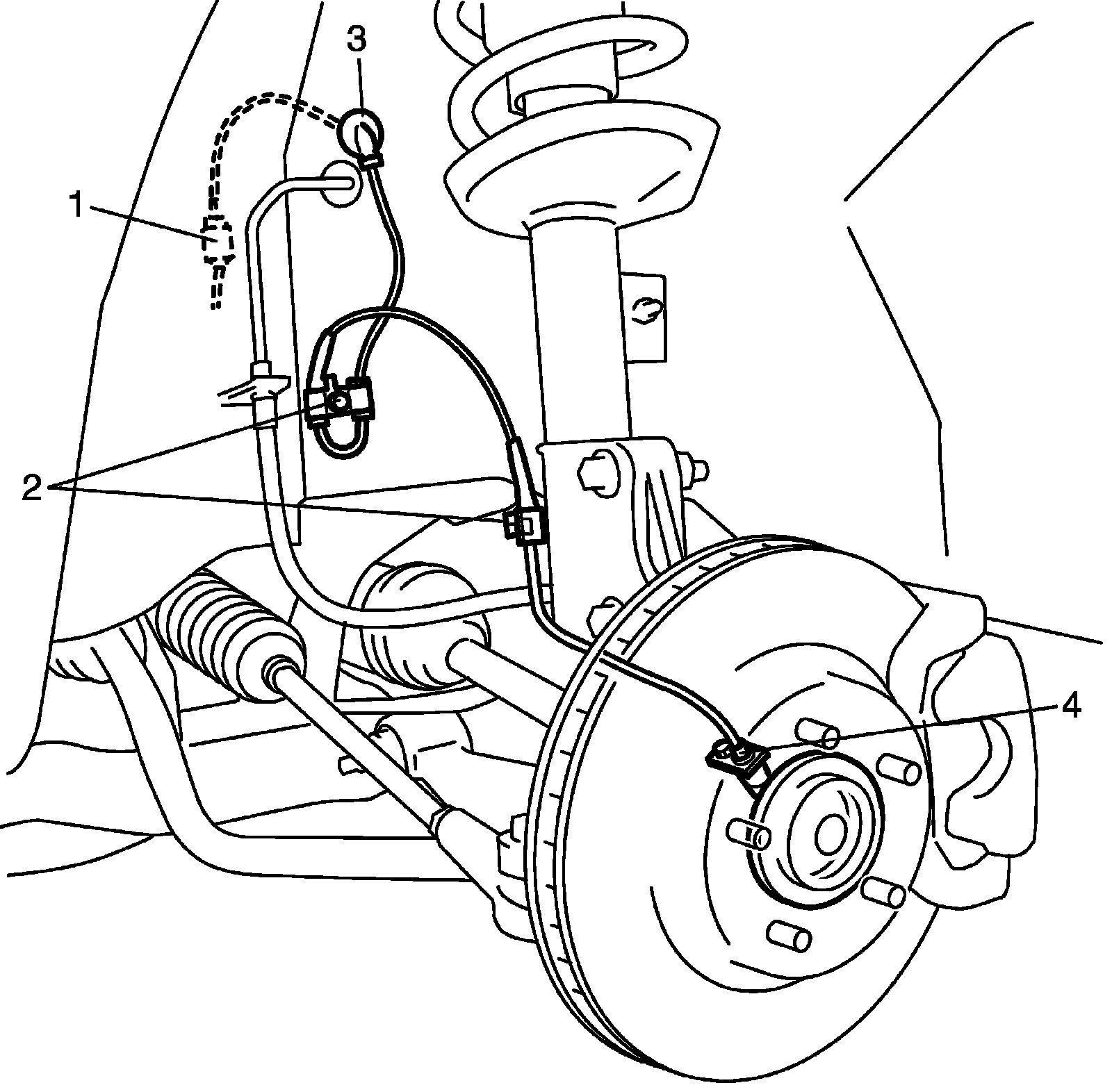 5) Remove front wheel speed sensor (4) from knuckle.
