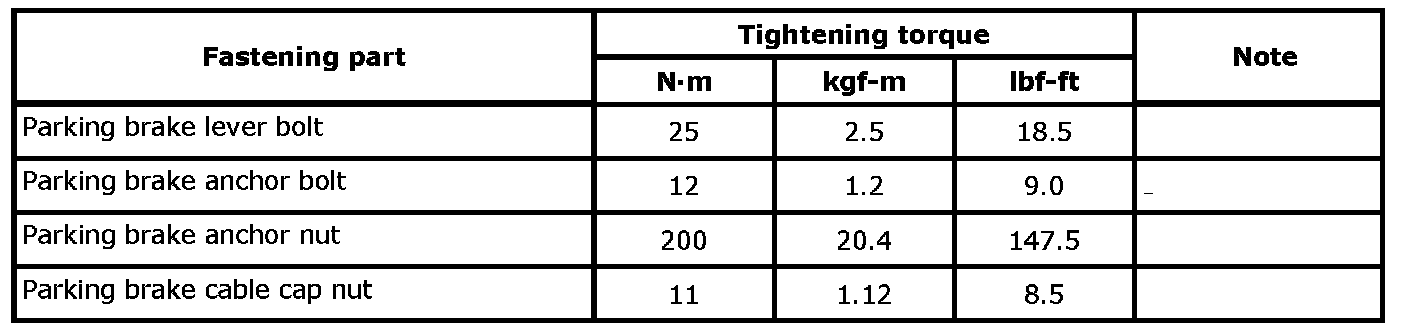 Parking Brake System: Specifications