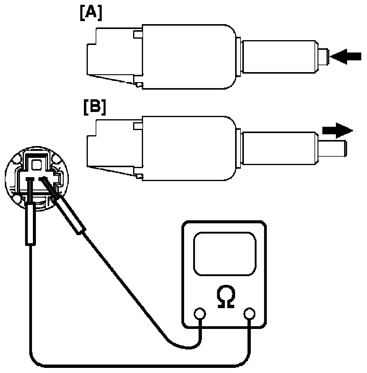 When switch shaft is pushed [A]: No continuity