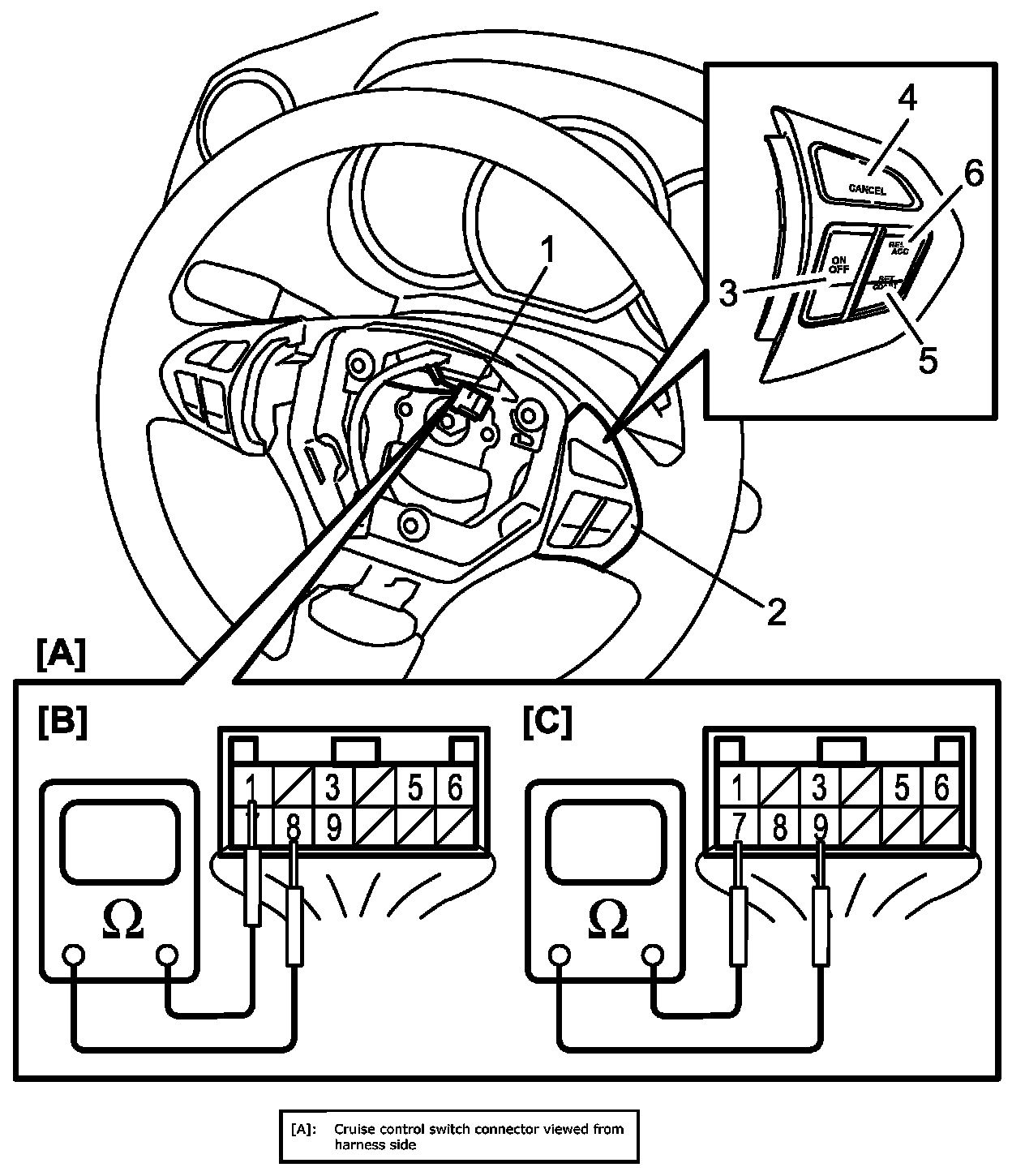 3. Check cruise control switch as follows.