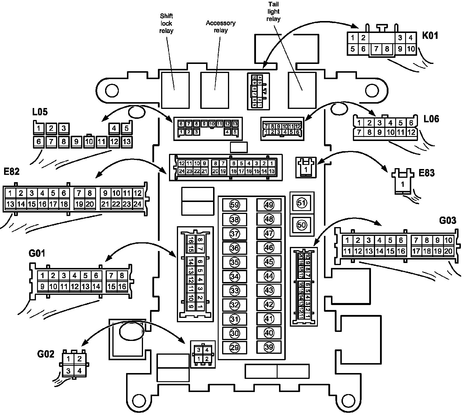 Junction Block (J/B) Connector / Fuse Layout Fuse Side: