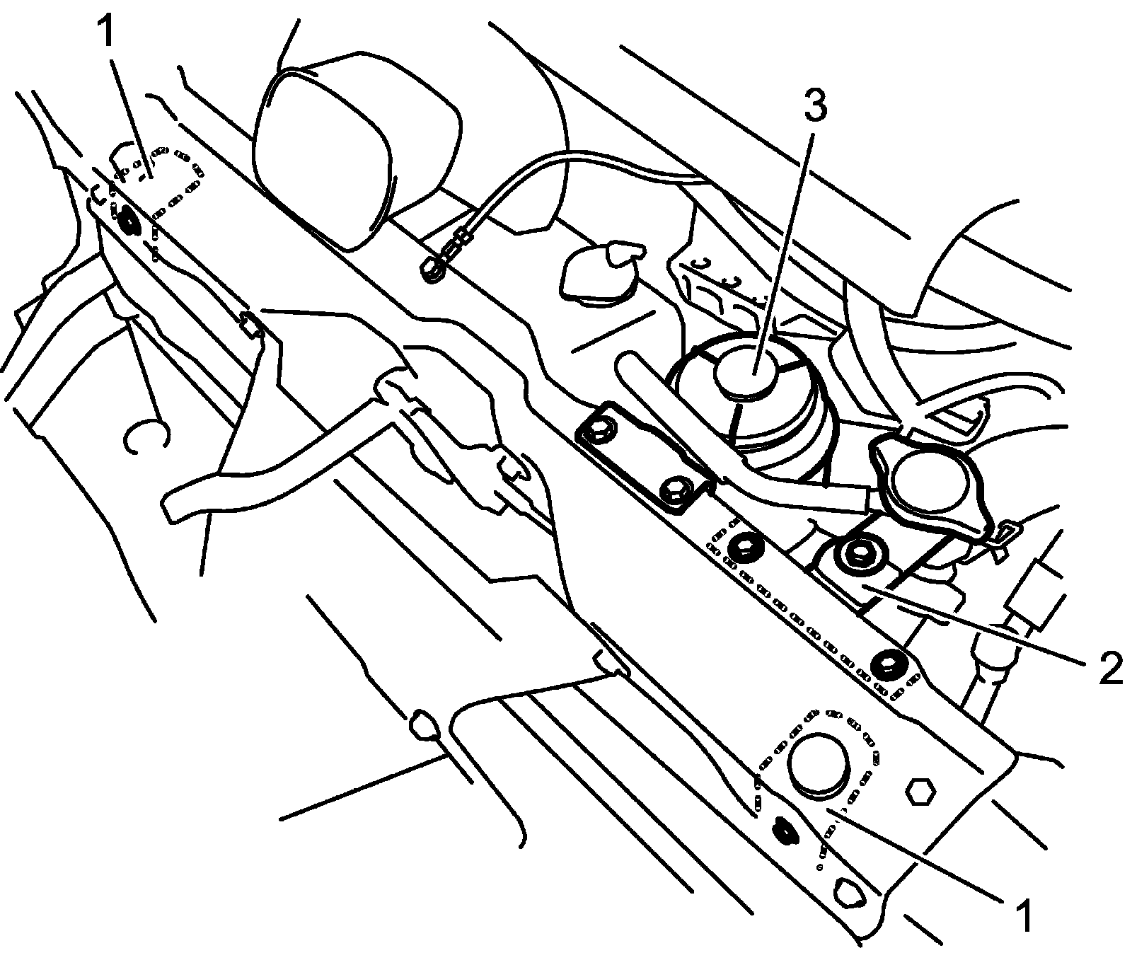 ^ Tighten engine harness ground bolts with engine harness ground cables to specified torque.