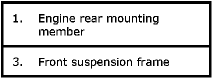 26) Support front suspension frame (1) and engine rear mounting member (2) using jack.
