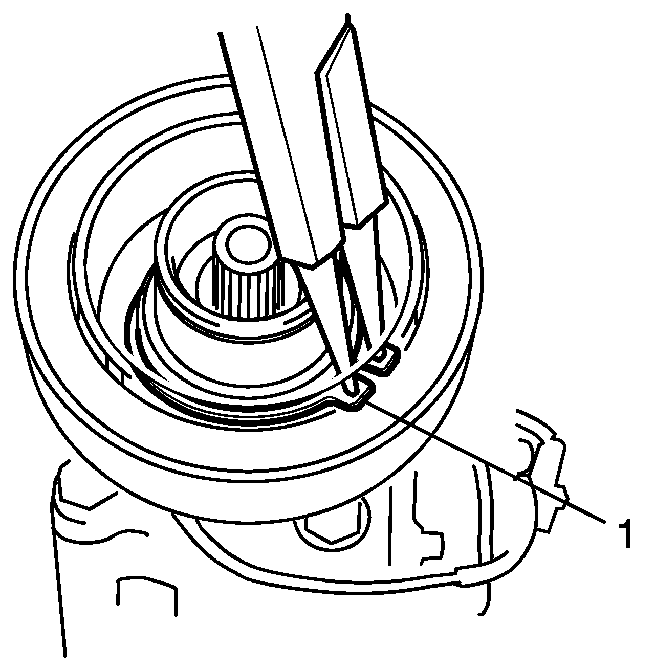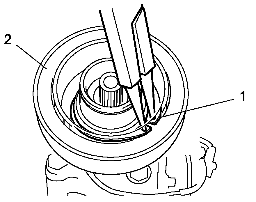 2. Install new snap ring (1) using snap ring plier (opening type).