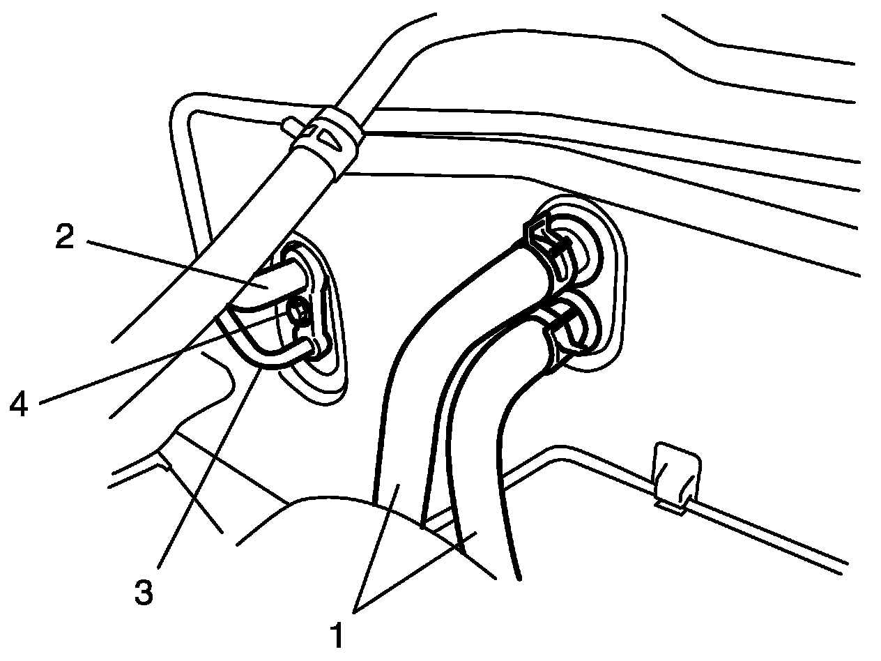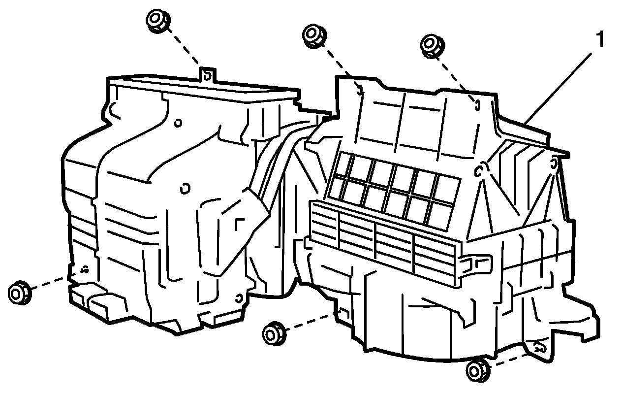 4. Drain engine coolant and disconnect heater hoses (1) from HVAC unit.