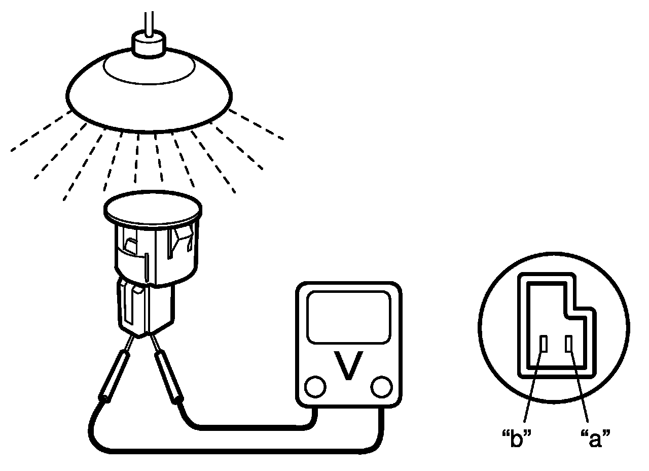 4. Measure the voltage between the terminals with the (+) probe on the terminal "a" and the (-) probe on the terminal "b".