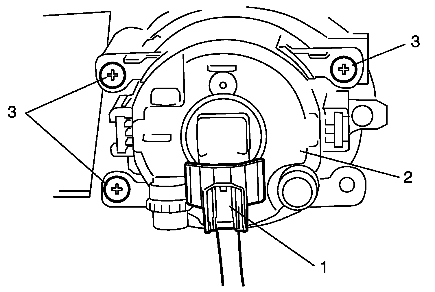 4. Remove fog light screws (3), and remove front fog light (2).