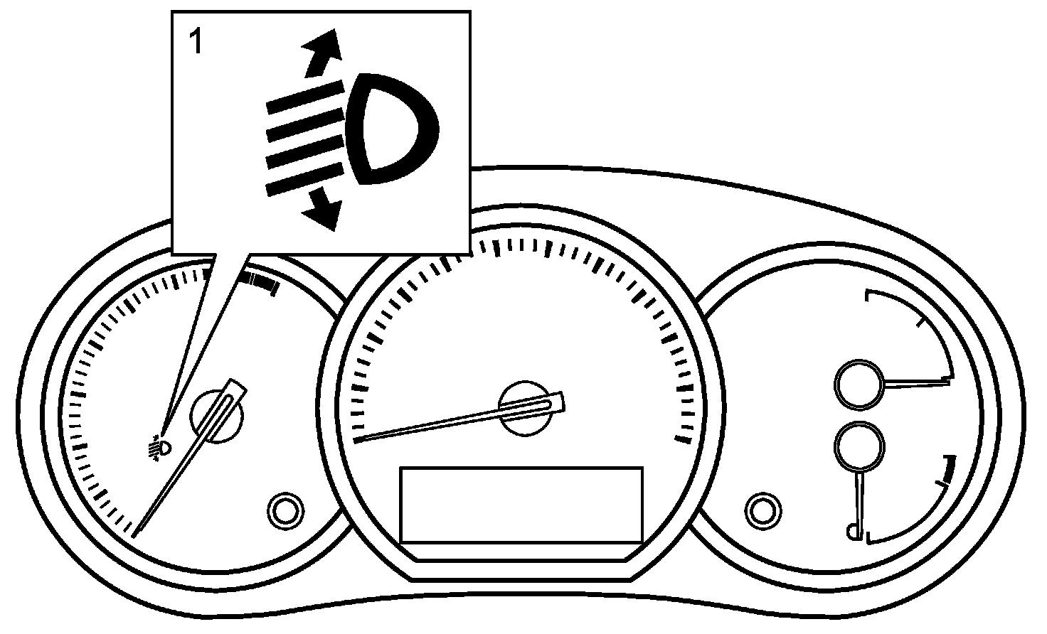 6. Confirm that headlight auto leveling warning light (1) flashes 3 times and turns off, which indicates that system initialization was completed properly. If it does not turn off after flashing 3 times, it means initialization was not successful. In such case, turn off ignition switch and perform Steps 1) to 6) again.