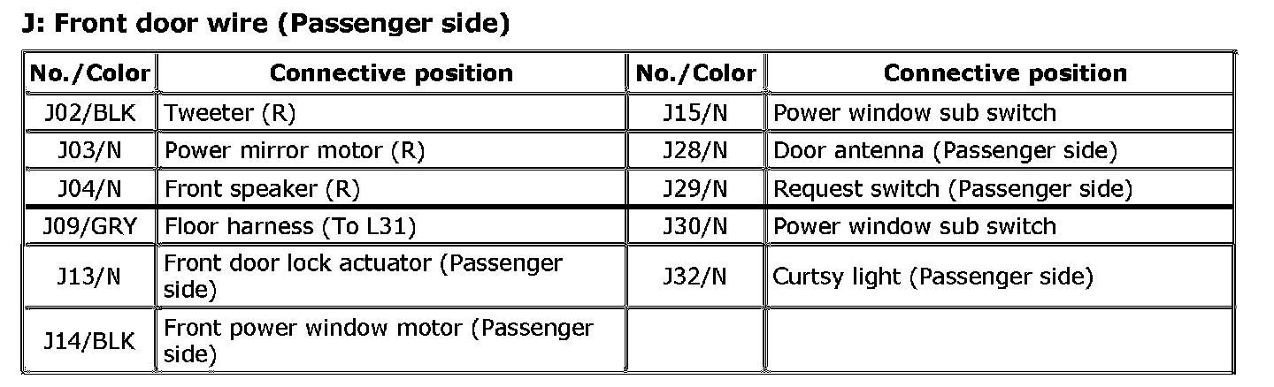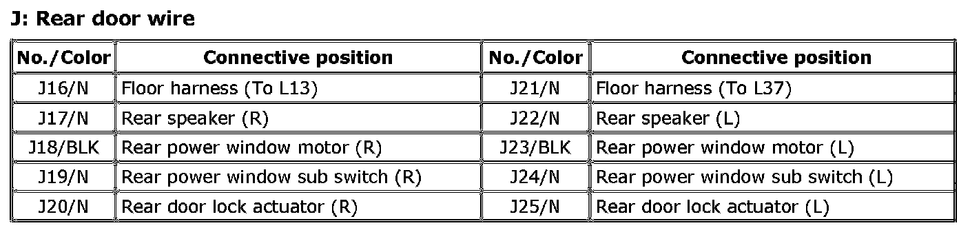 J: Front And Rear Door Wire, Rear Door Joint Wire / K: Roof Wire View: