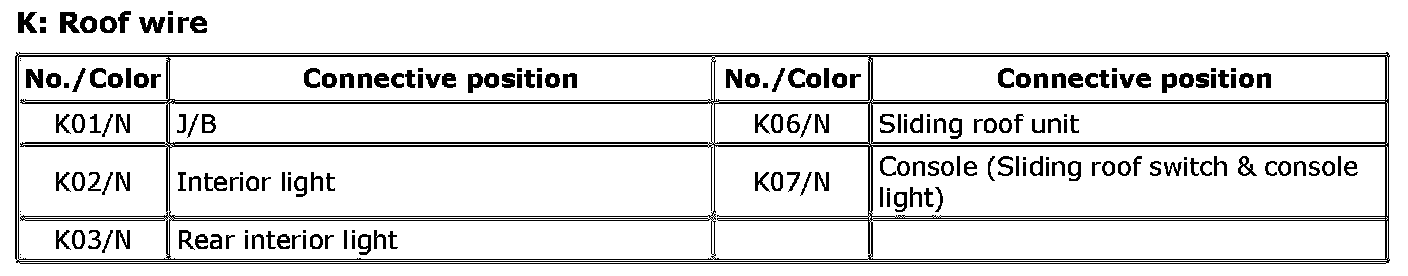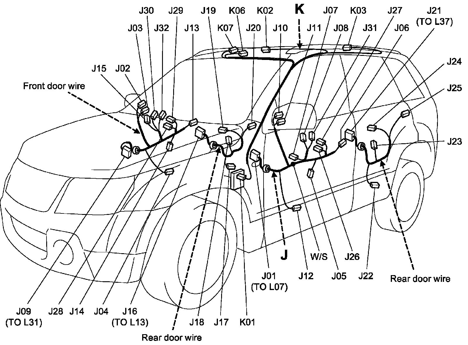 J: Front And Rear Door Wire, Rear Door Joint Wire / K: Roof Wire View: