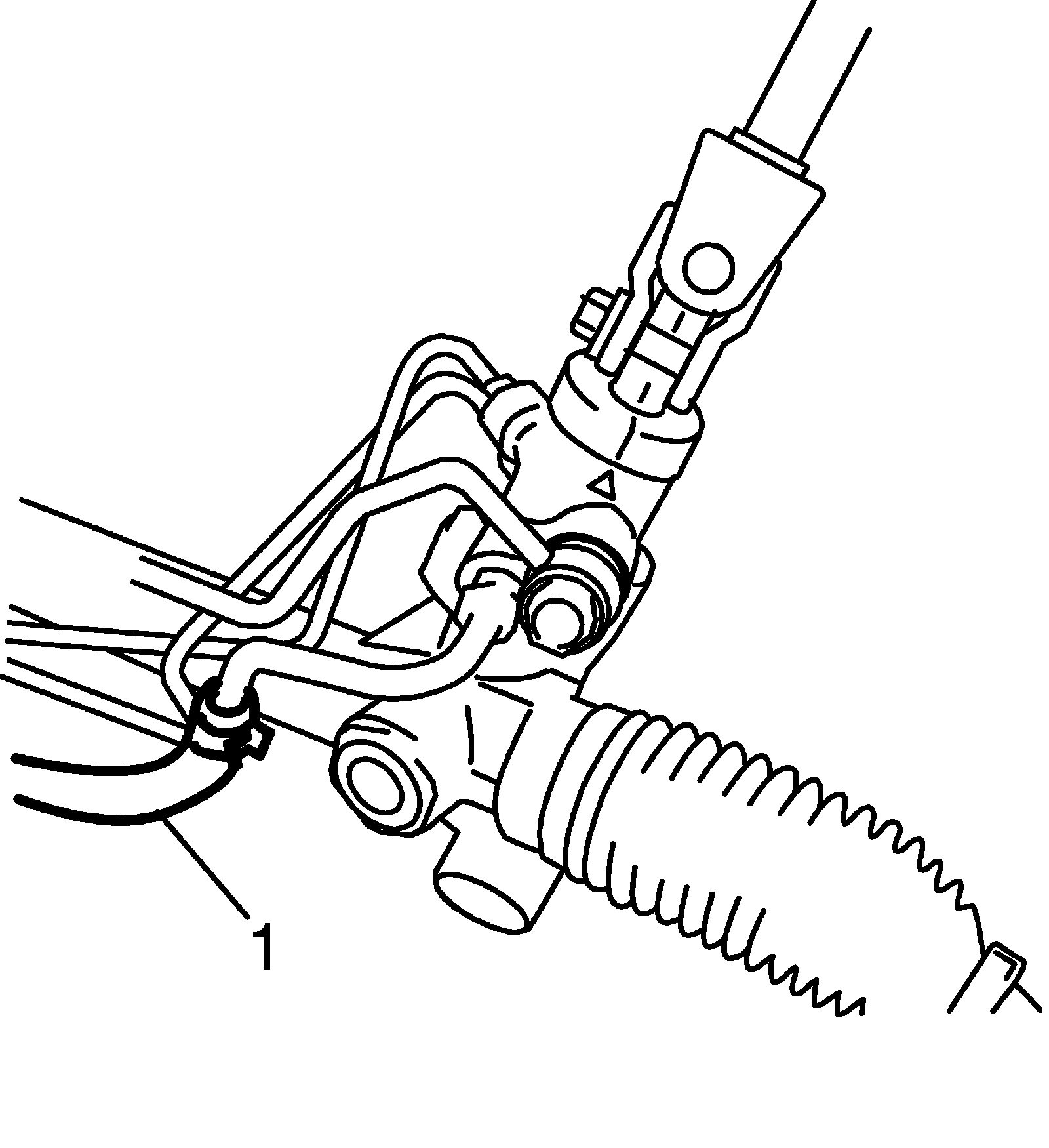 3) When engine is cool, remove P/S gear low pressure hose (1) from pipe and drain P/S fluid from low pressure hose.