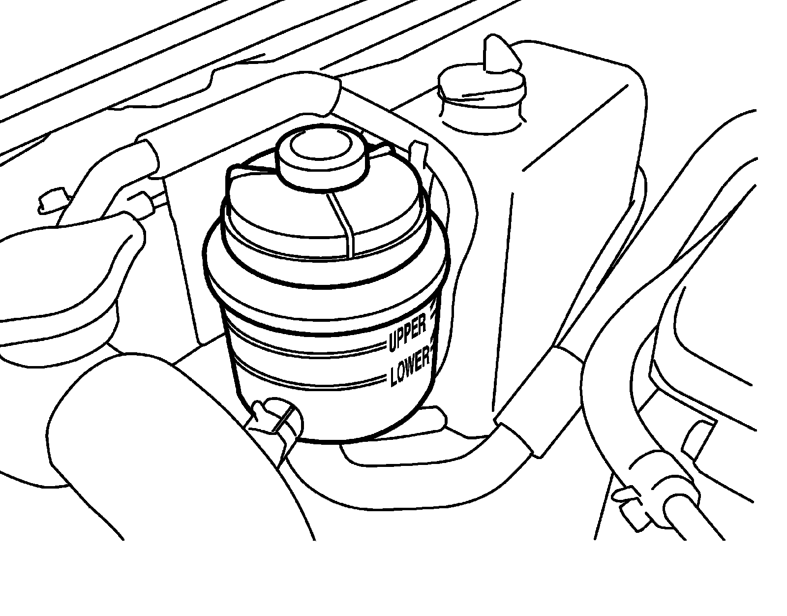 P/S Fluid Level CheckWith engine stopped, check fluid level indicated on P/S fluid reservoir, which should be between "UPPER" and "LOWER" marks. If it is lower than "LOWER" mark, fill fluid up to "UPPER" mark.