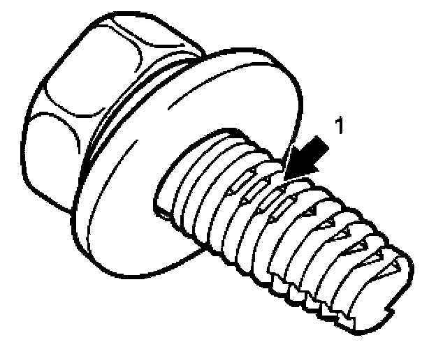 NOTE: This ground bolt is not used on the engine block, the transmission case or the steering column mounting bracket (non-painted). Identify the bolt with the paintscratch shape (1) on the screw.