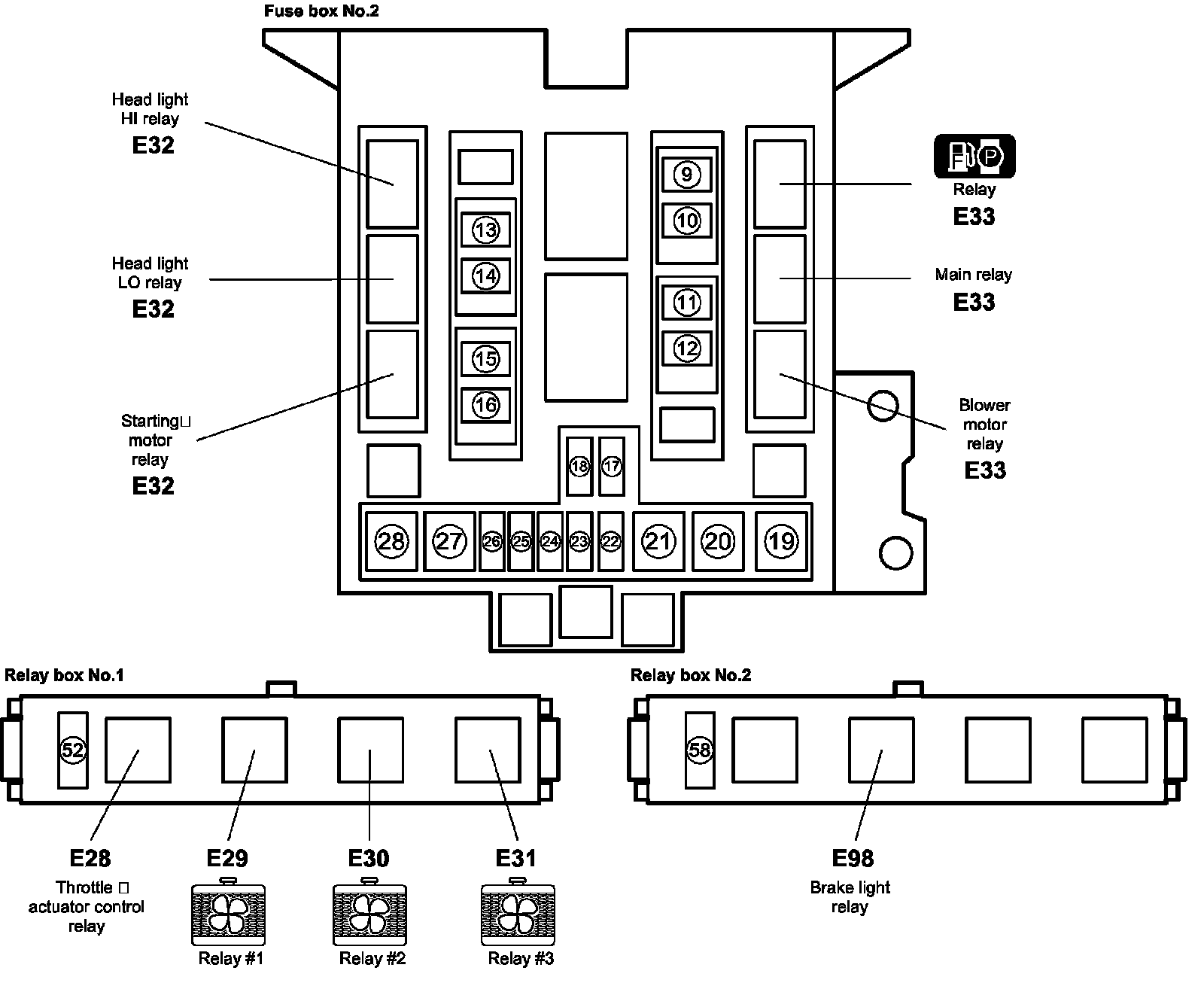 Fuse Box No.2 (In Power Integration No.1, Power Integration No.2), Relay Box