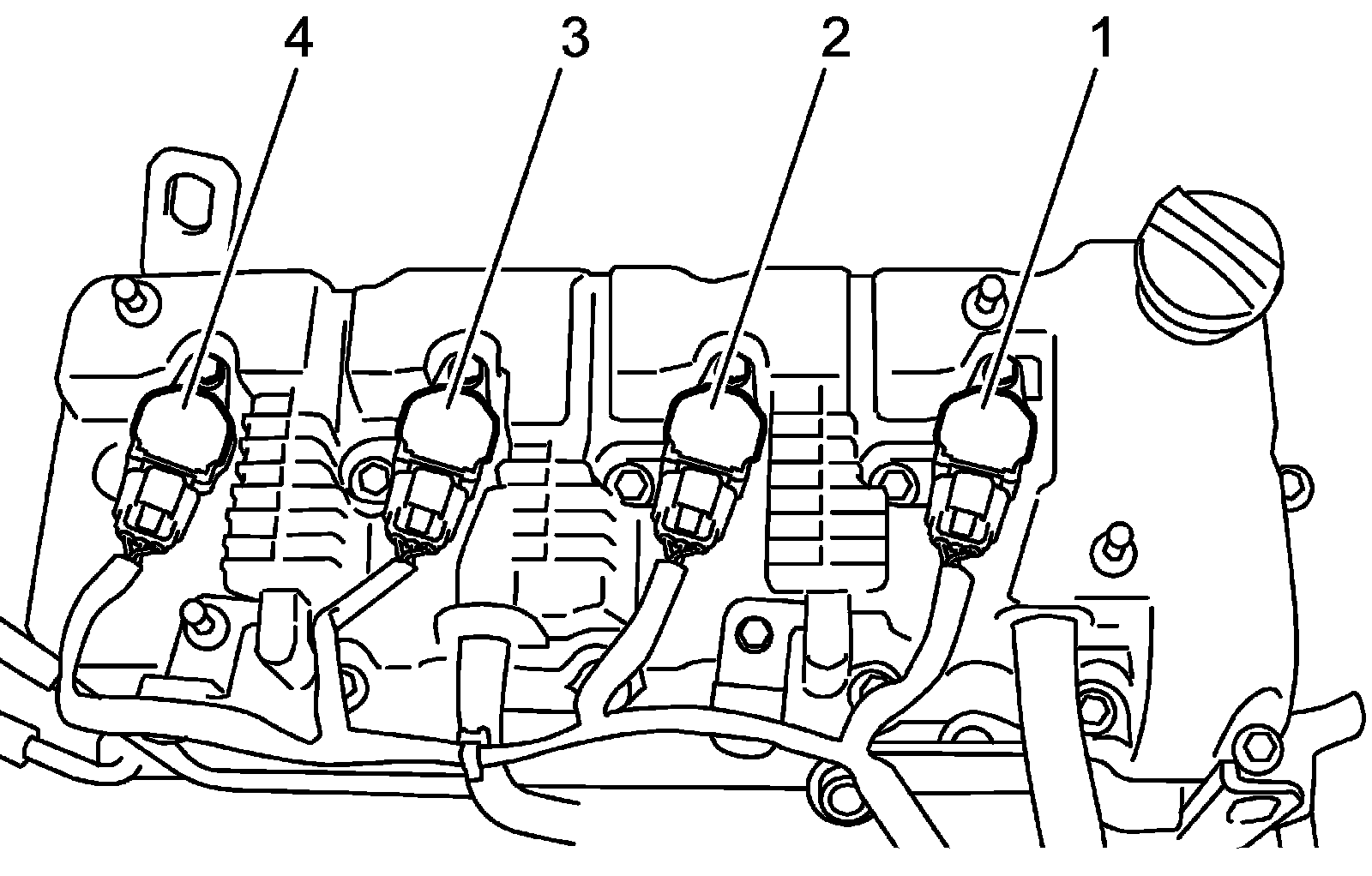 Four cylinders of engine are identified by number; No.1 (1), No.2 (2), No.3 (3) and No.4 (4) counted from crankshaft pulley side to flywheel side.