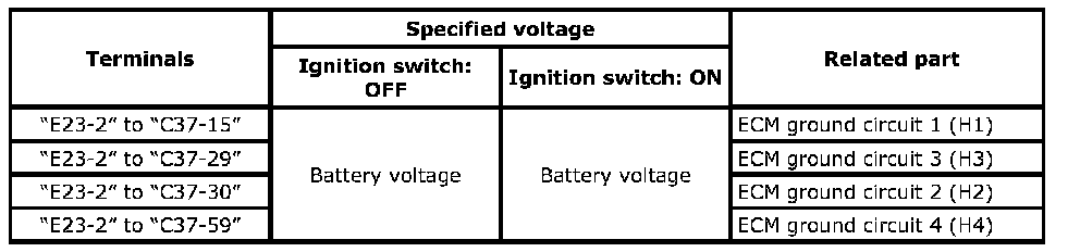 If each measured voltage is out of specified voltage, repair ECM ground circuits.
