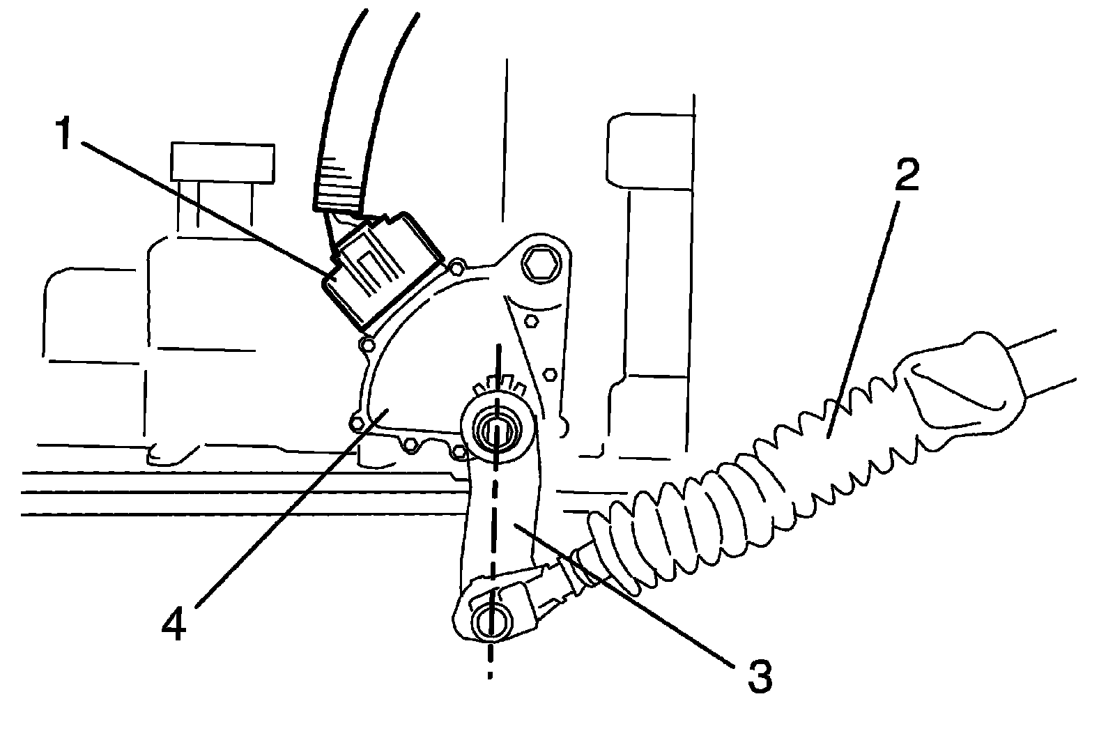 1) Install transmission range sensor (3) and tighten sensor bolt (4) temporarily.