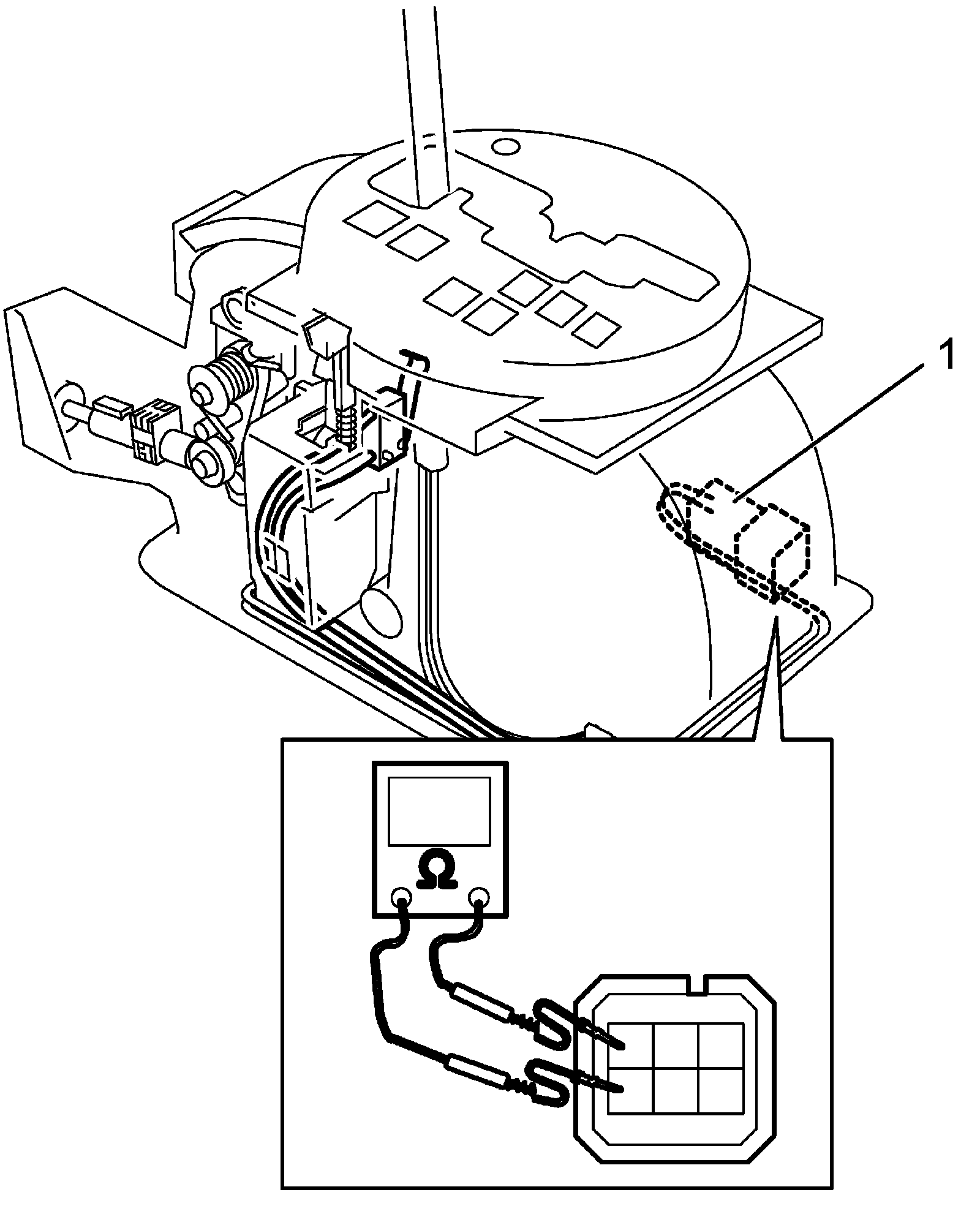 3) Disconnect manual selector connector (1).